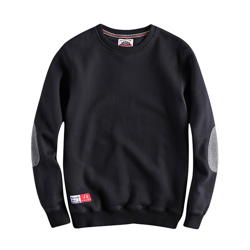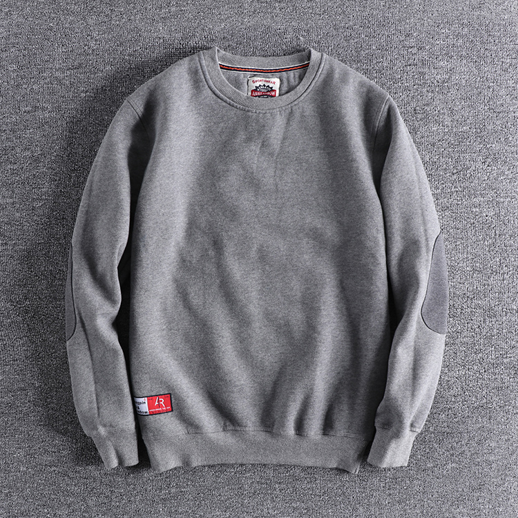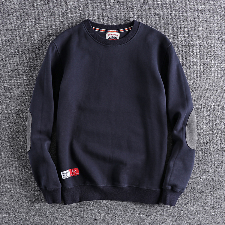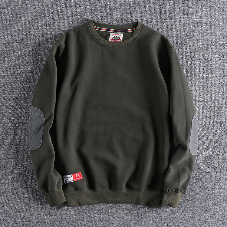 代购香港秋冬加绒厚实宽松舒适毛圈袖子拼接复古男士圆领套头卫衣