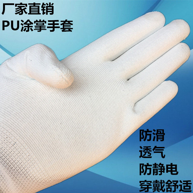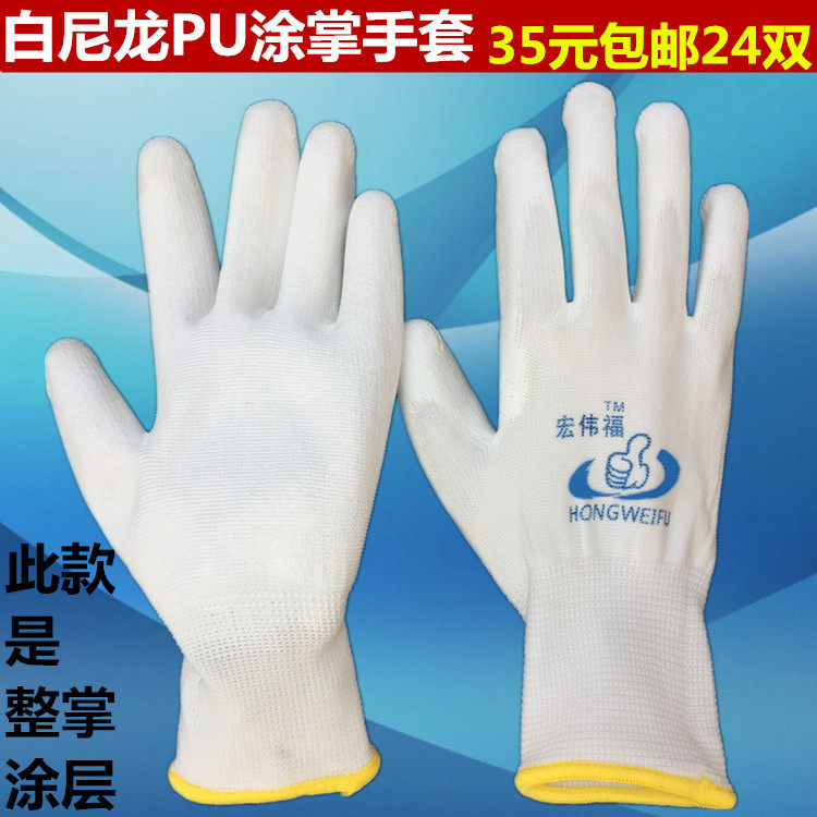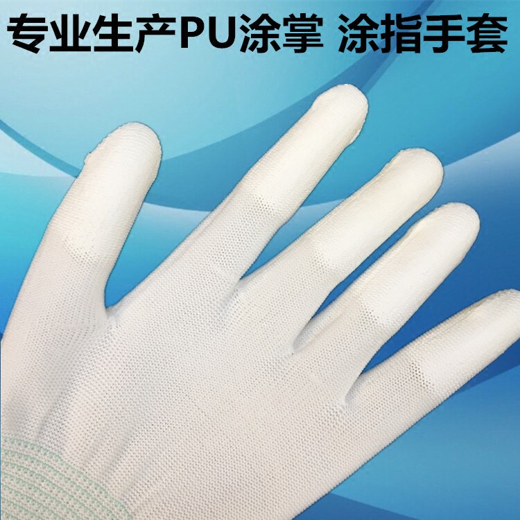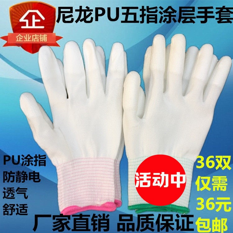 包邮36双薄款白尼龙PU涂指手套浸胶涂胶无尘防静电电子厂劳保手套