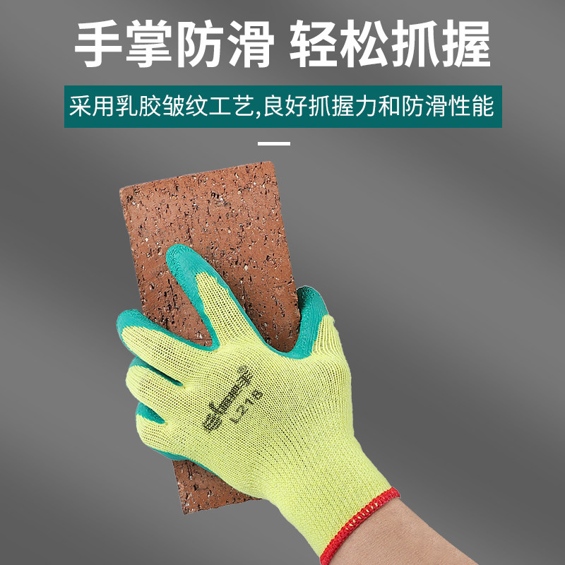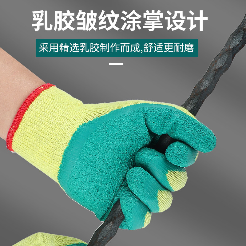 手套劳保工作耐磨劳动工地干活防滑橡胶加厚工业乳胶皱纹涂掌浸胶