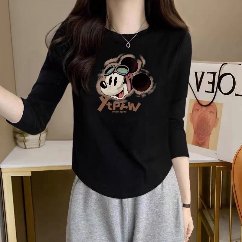 莫代尔2024新款秋冬圆领长袖T恤显瘦纯色百搭打底修身不对称上衣
