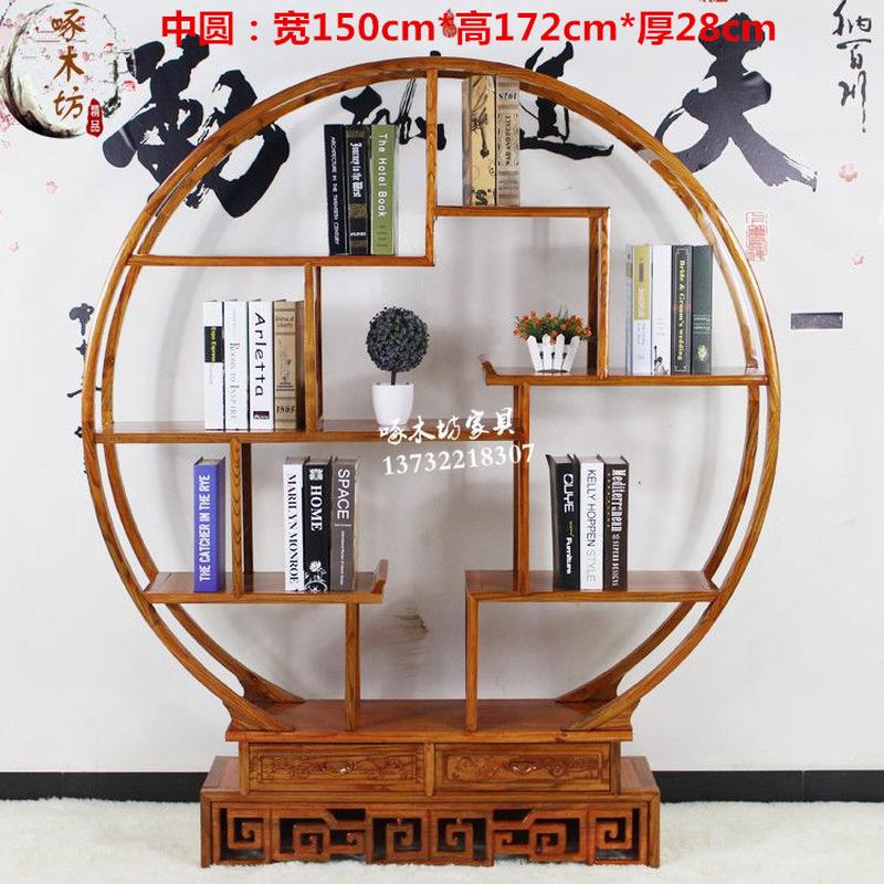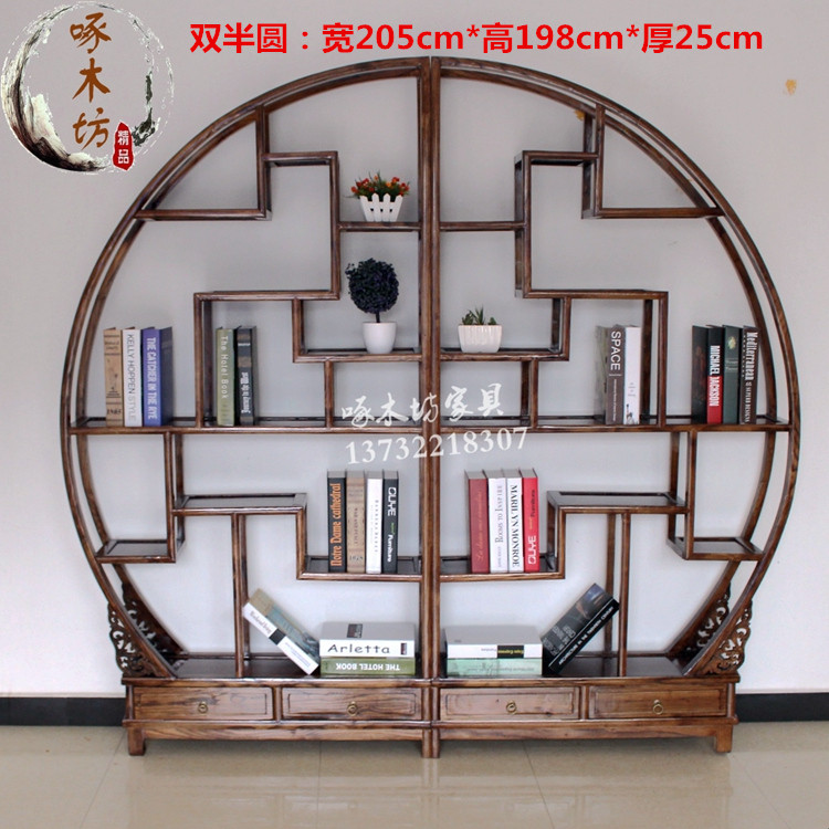 仿古实木中式 博古架多宝阁双半圆形古董架展示架柜明清古典新款