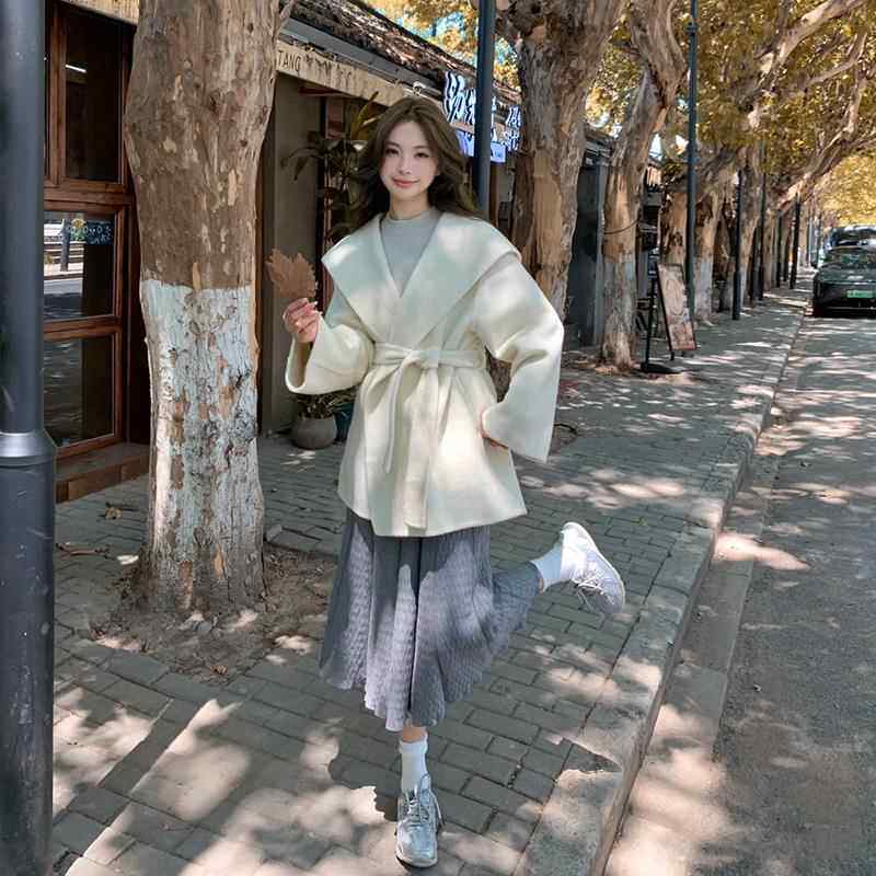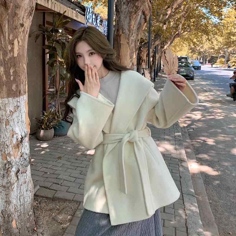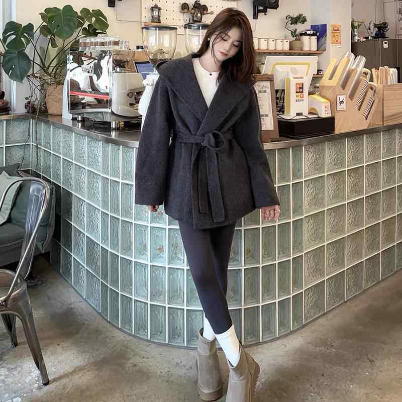 双面羊绒呢子大衣女短款小个子2024冬季高级感斗篷连帽羊毛呢外套