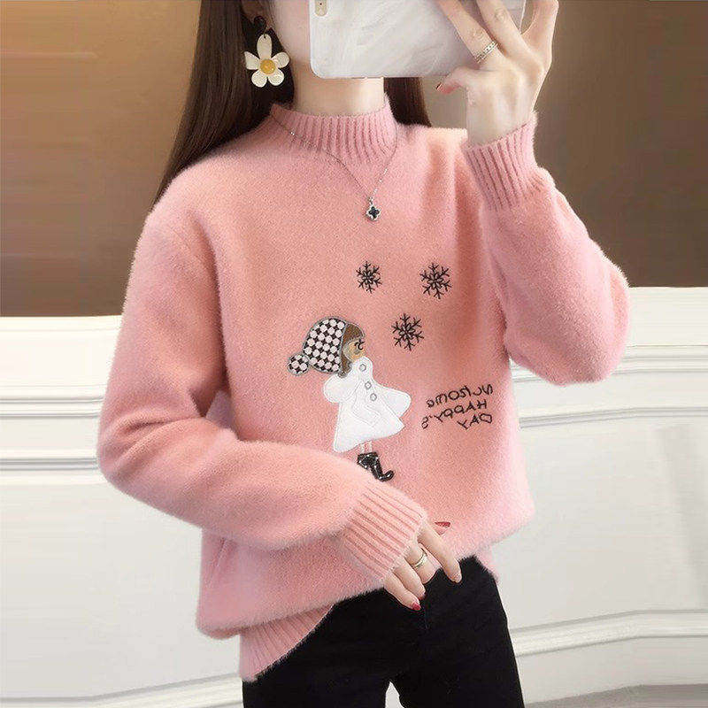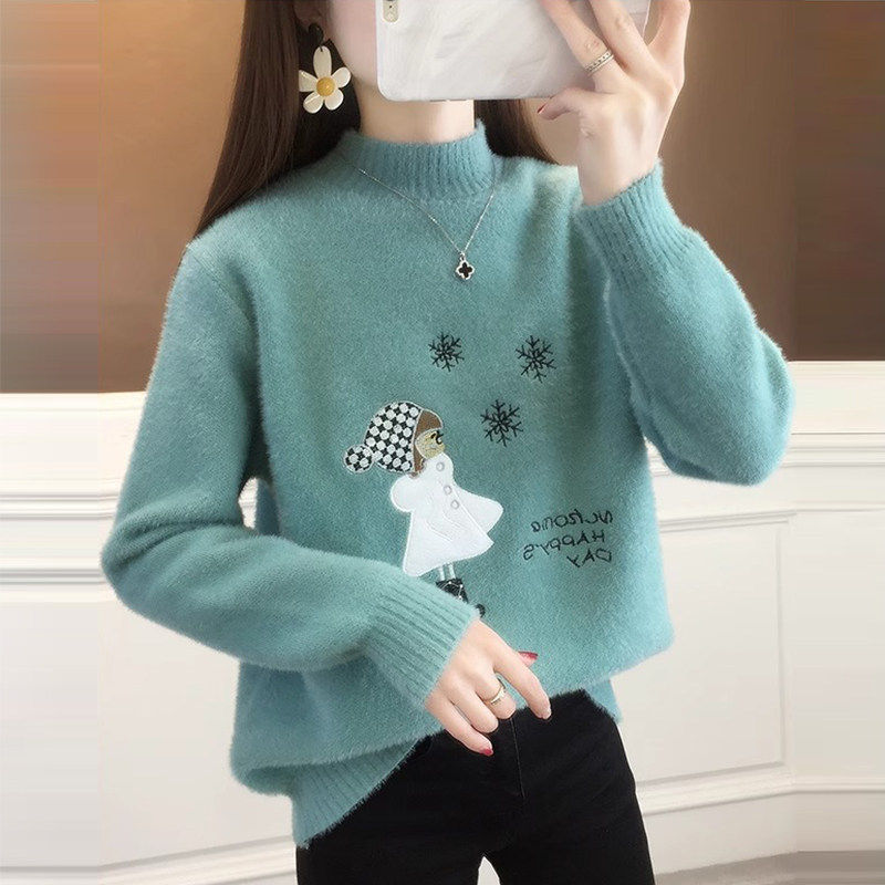 半高领毛衣女秋冬新款洋气水貂绒上衣短款外穿女士针织打底衫长袖