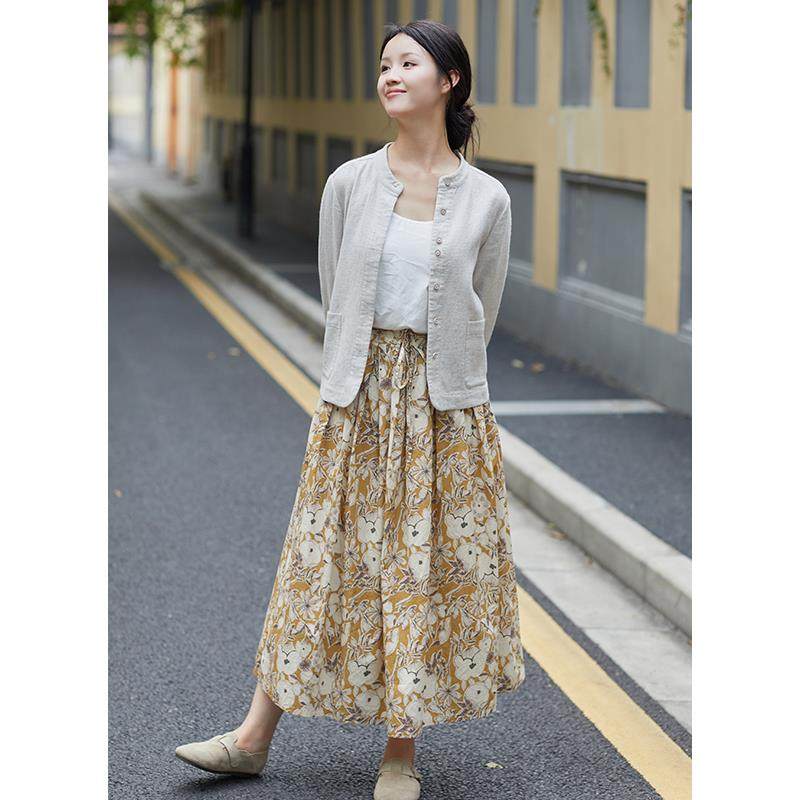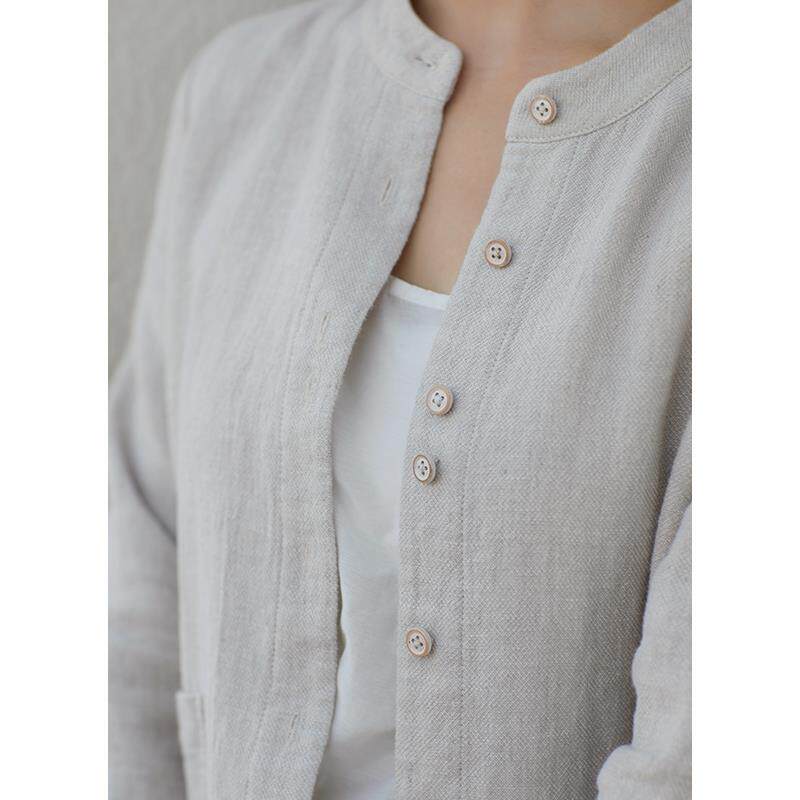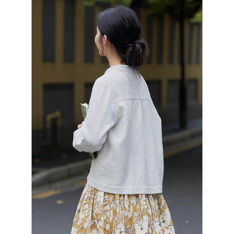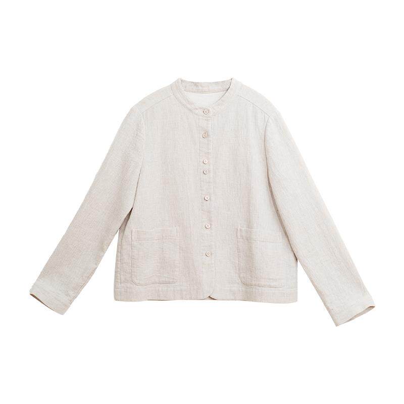 忘城H1284座/秋季新款小个子色织亚麻立领开衫百搭短款上衣外套女