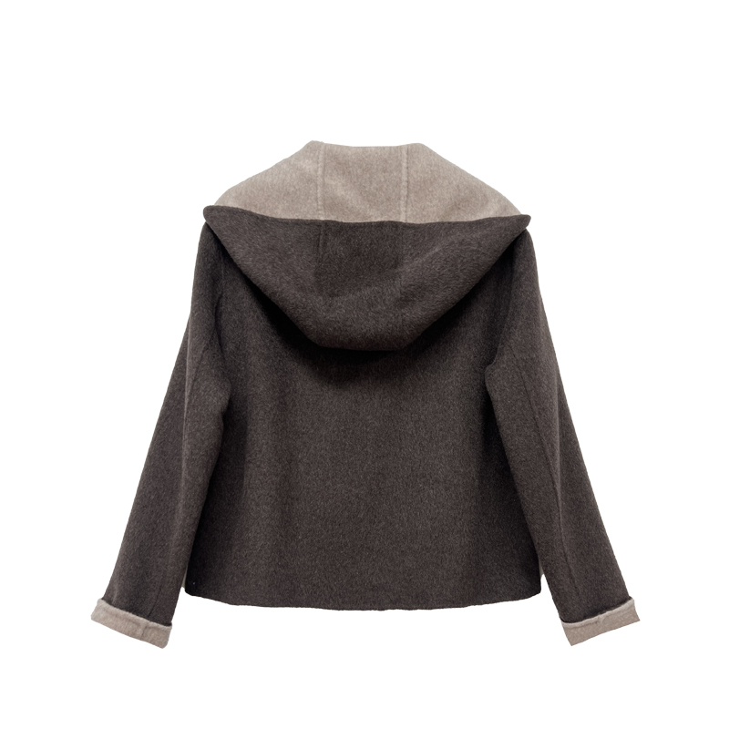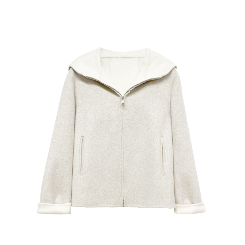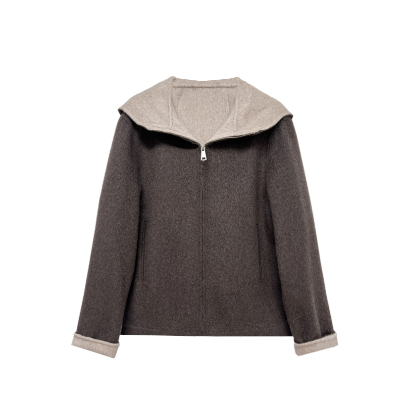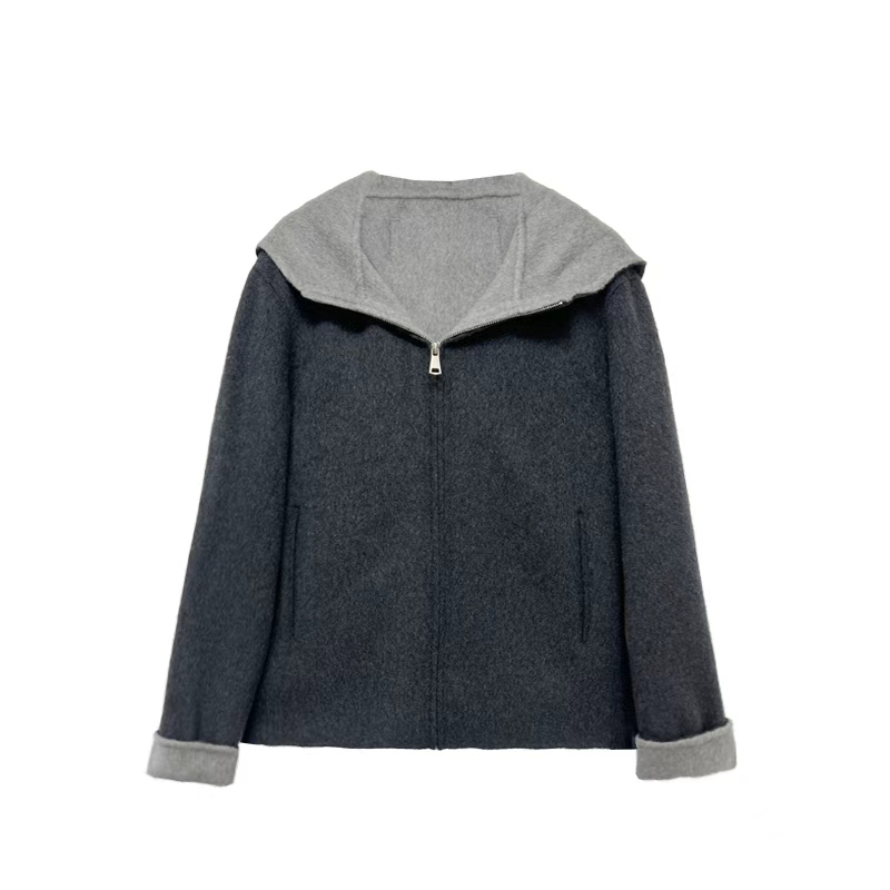 【橙庐】504901绵羊毛天丝山羊绒双面呢连帽拉链外套 春秋女时尚