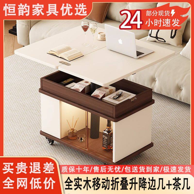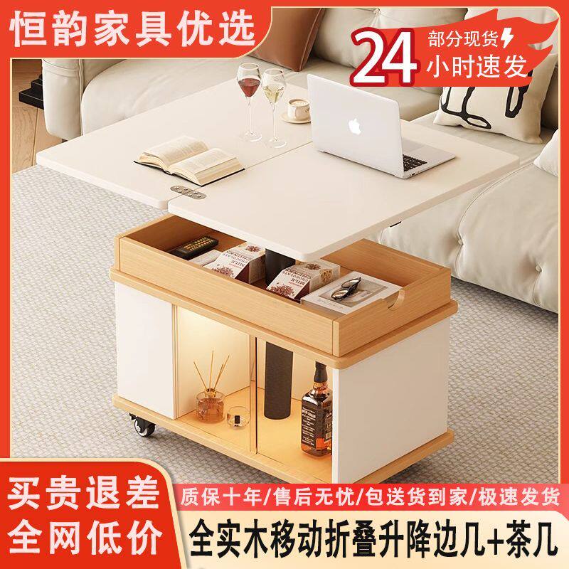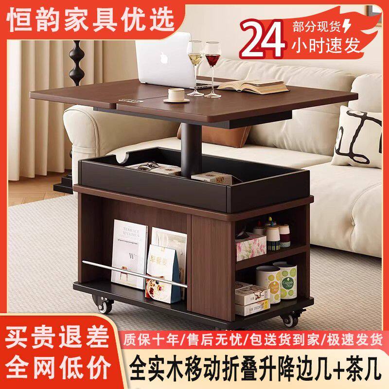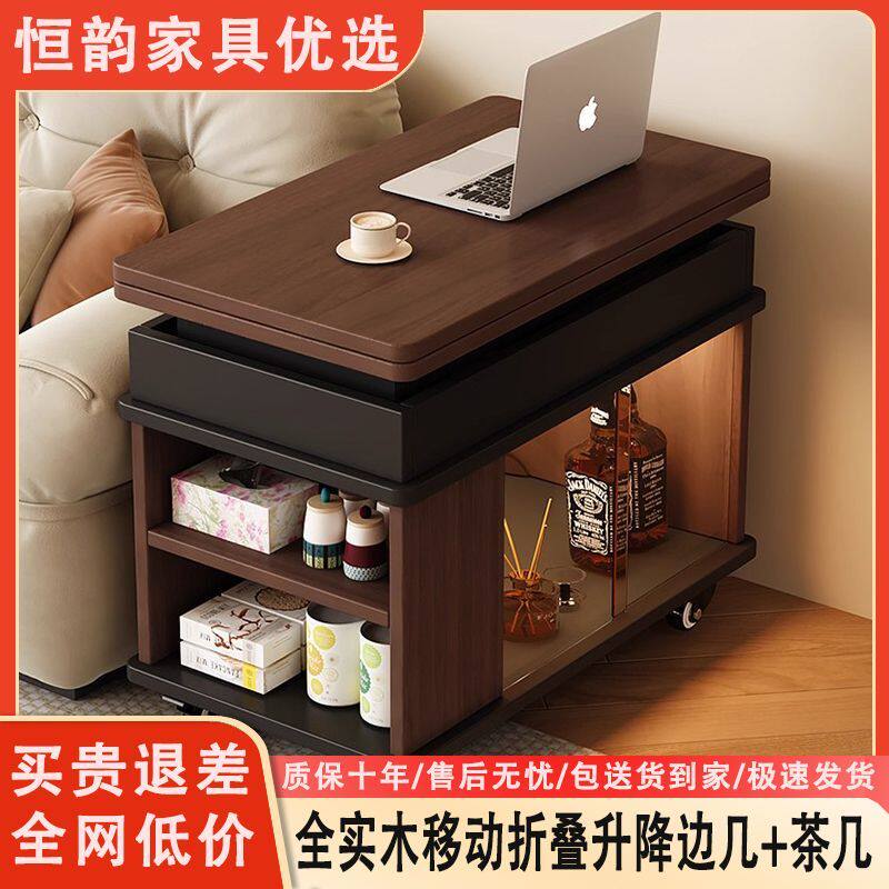 全实木折叠移动升降小推车沙发边几家用茶几客厅多功能小户型茶桌