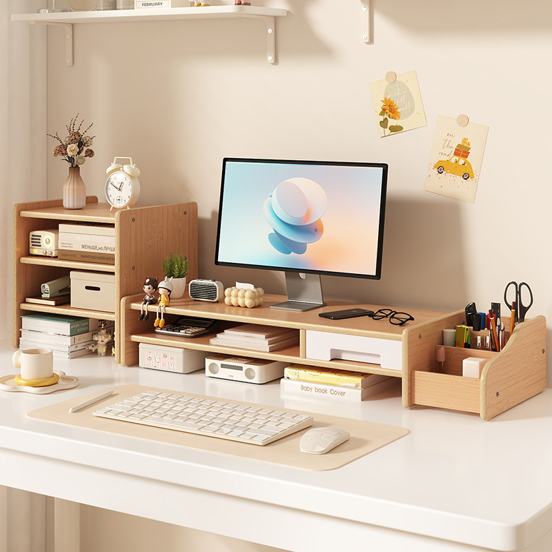 台式电脑增高架显示器支架带抽屉桌面置物架办公工位垫高收纳托架
