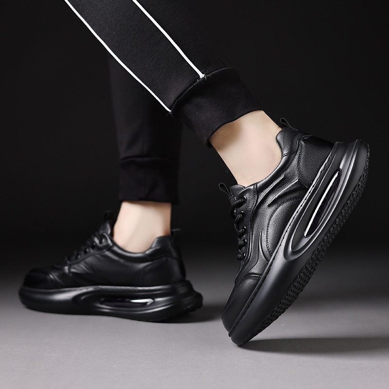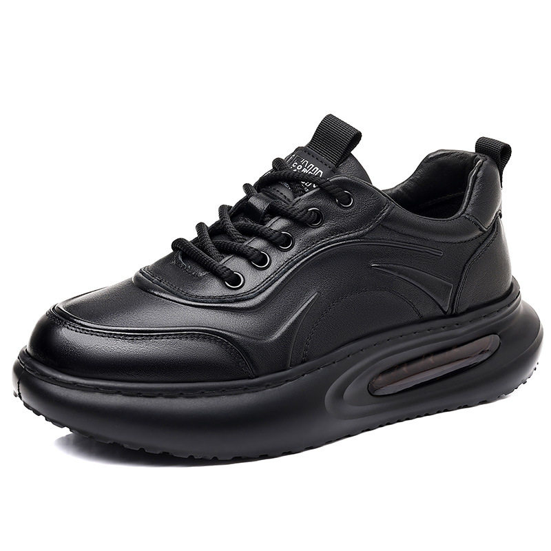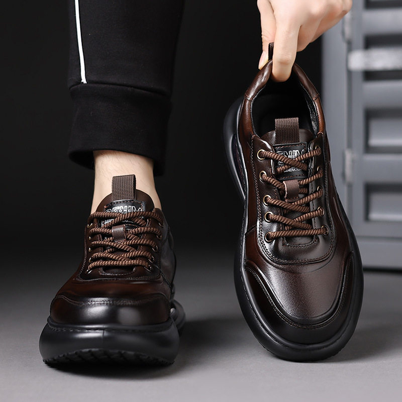 高档男士2025冬季新款手抓纹真皮运动休闲鞋系带气垫底厚底男鞋