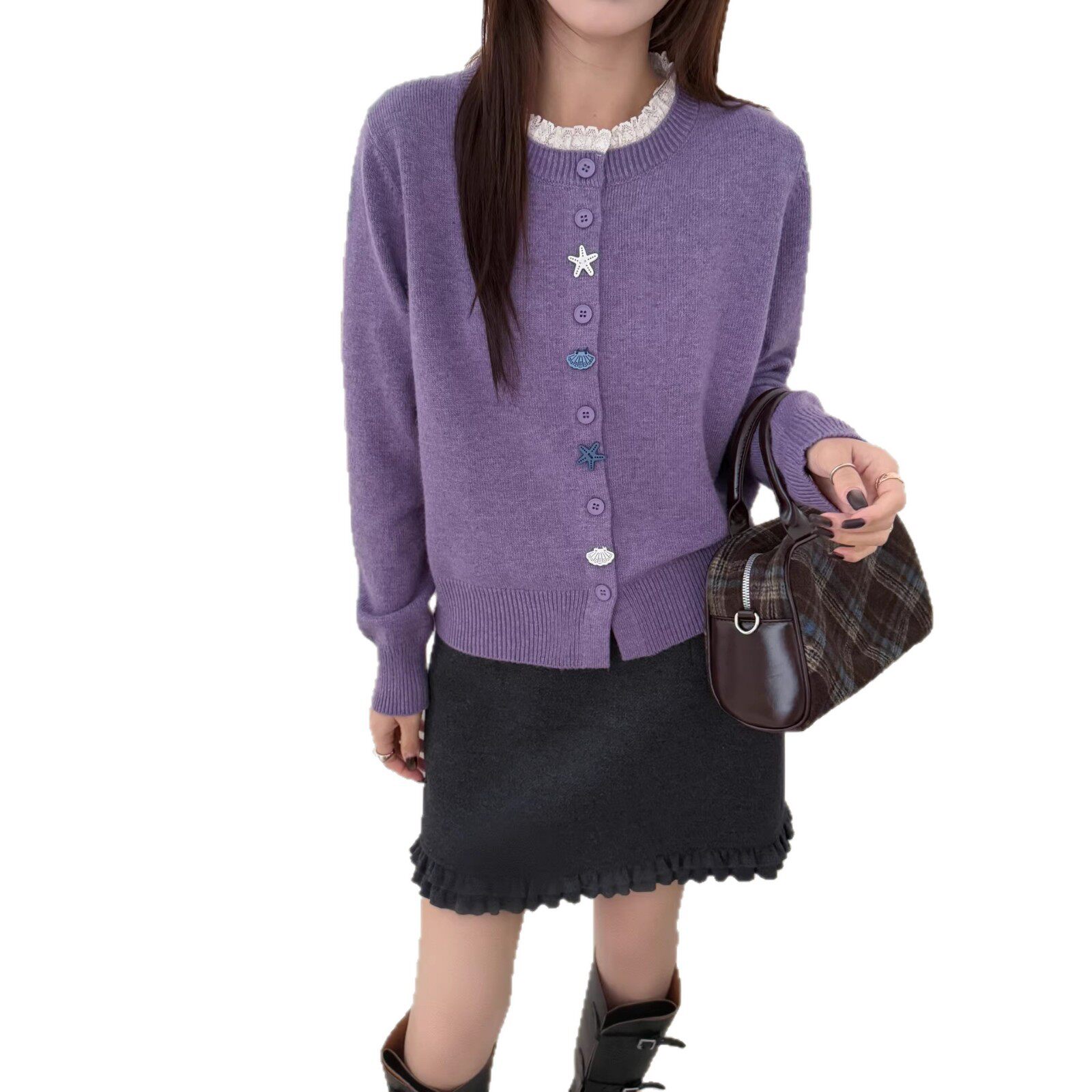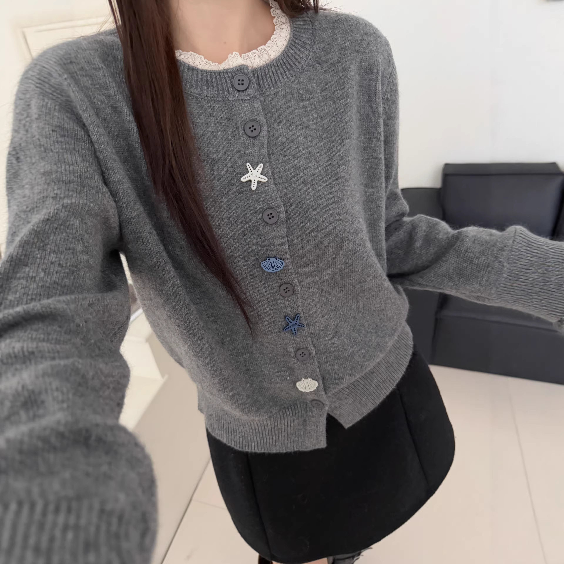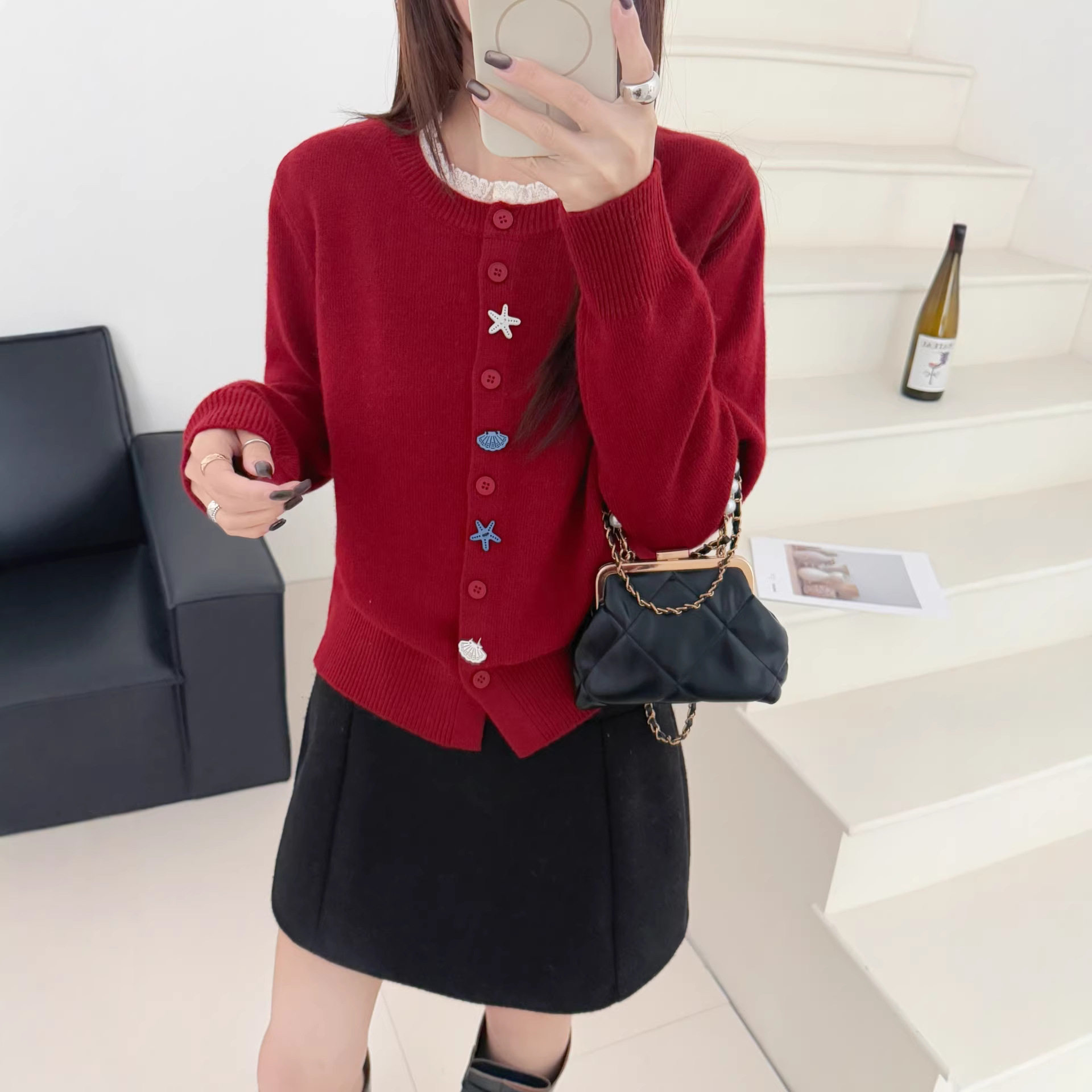 法式高端羊毛2026新年春款蕾丝小开衫红色外套内搭打底毛衣洋气女
