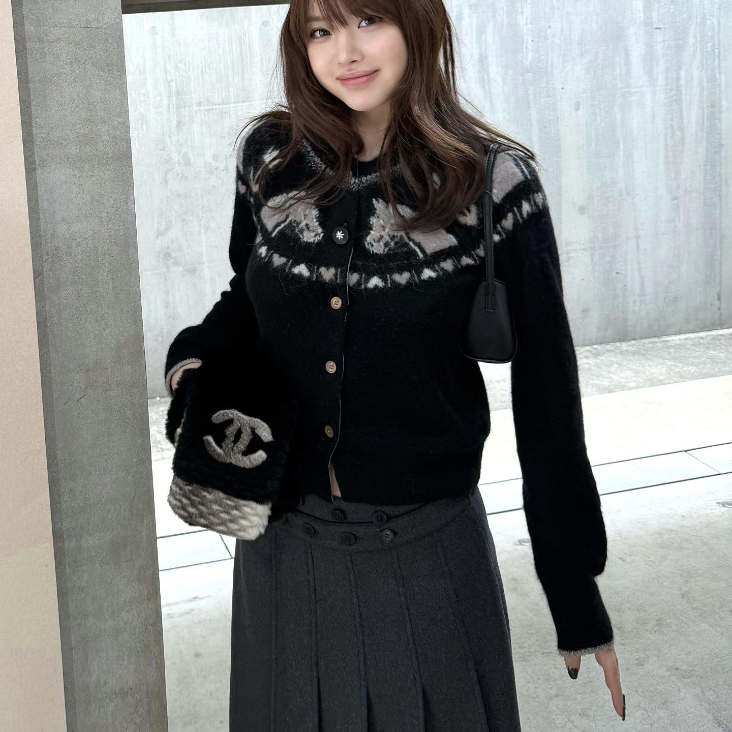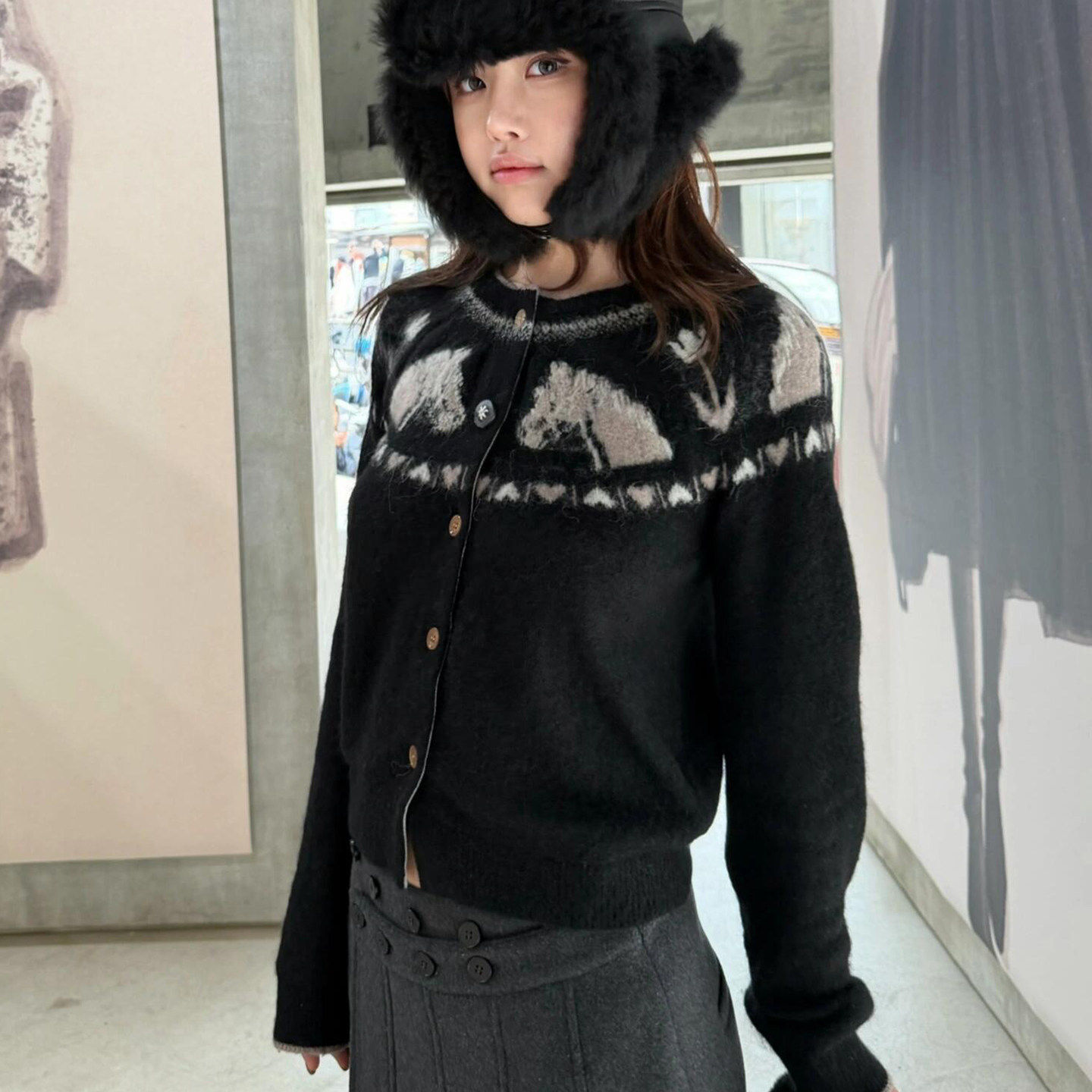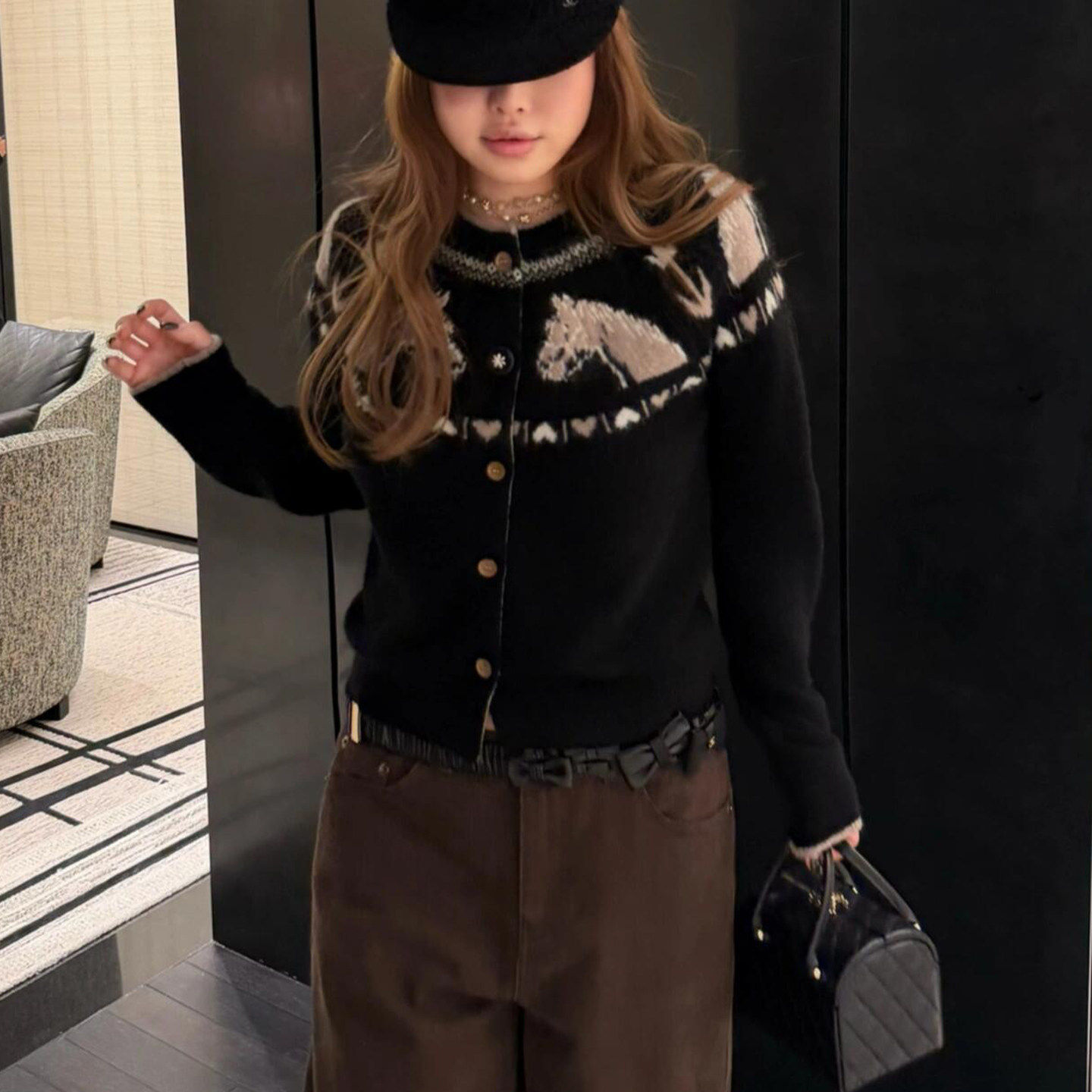 费尔岛毛衣外套女秋冬穿搭小马提花圆领针织开衫修身显瘦辣妹上衣