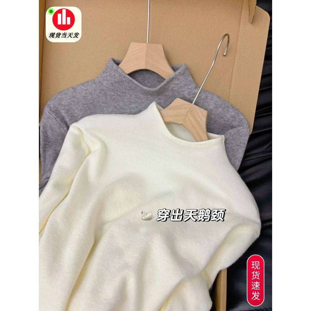 简单干净气质的穿搭!纯色小众长袖打底衫女秋冬百搭气质修身上衣