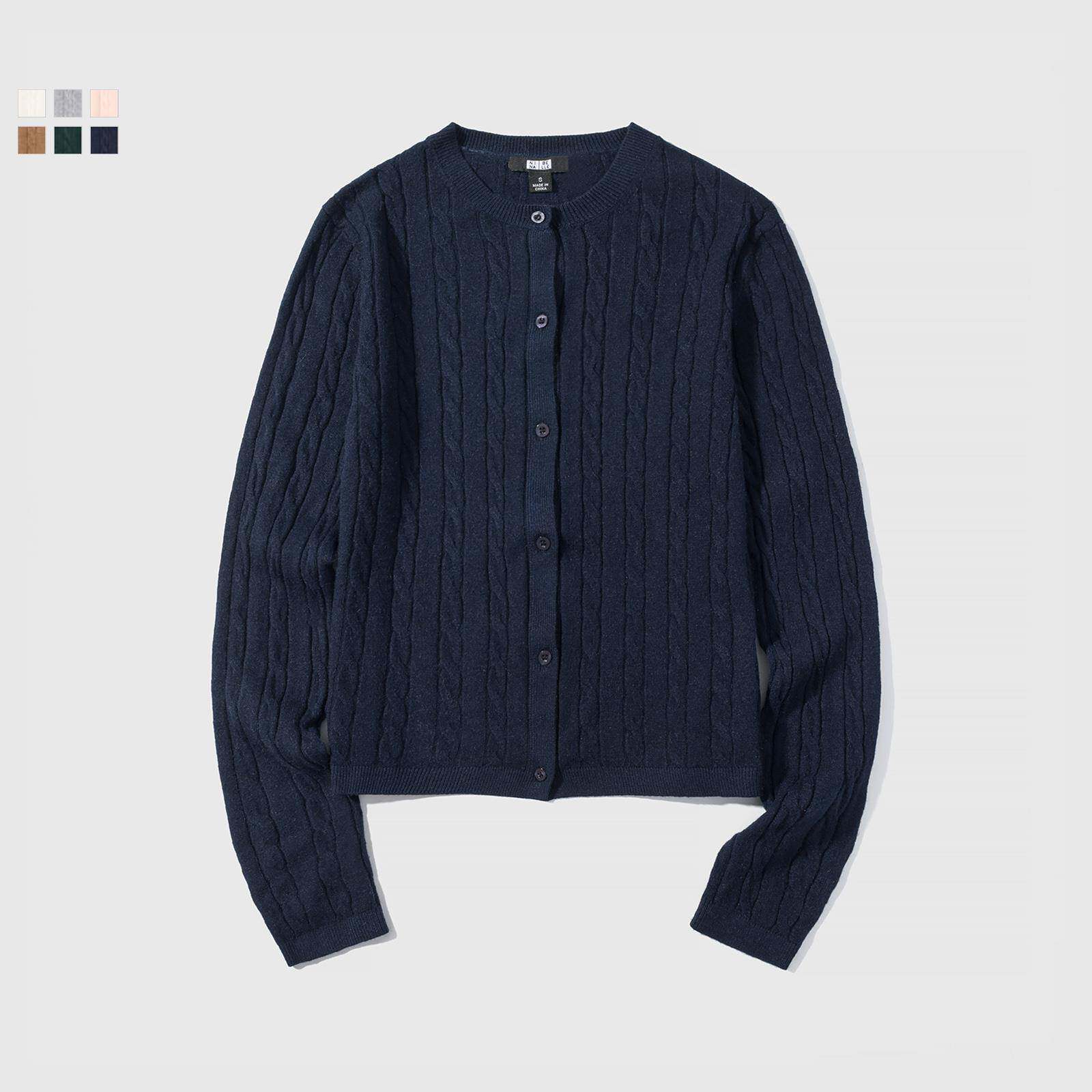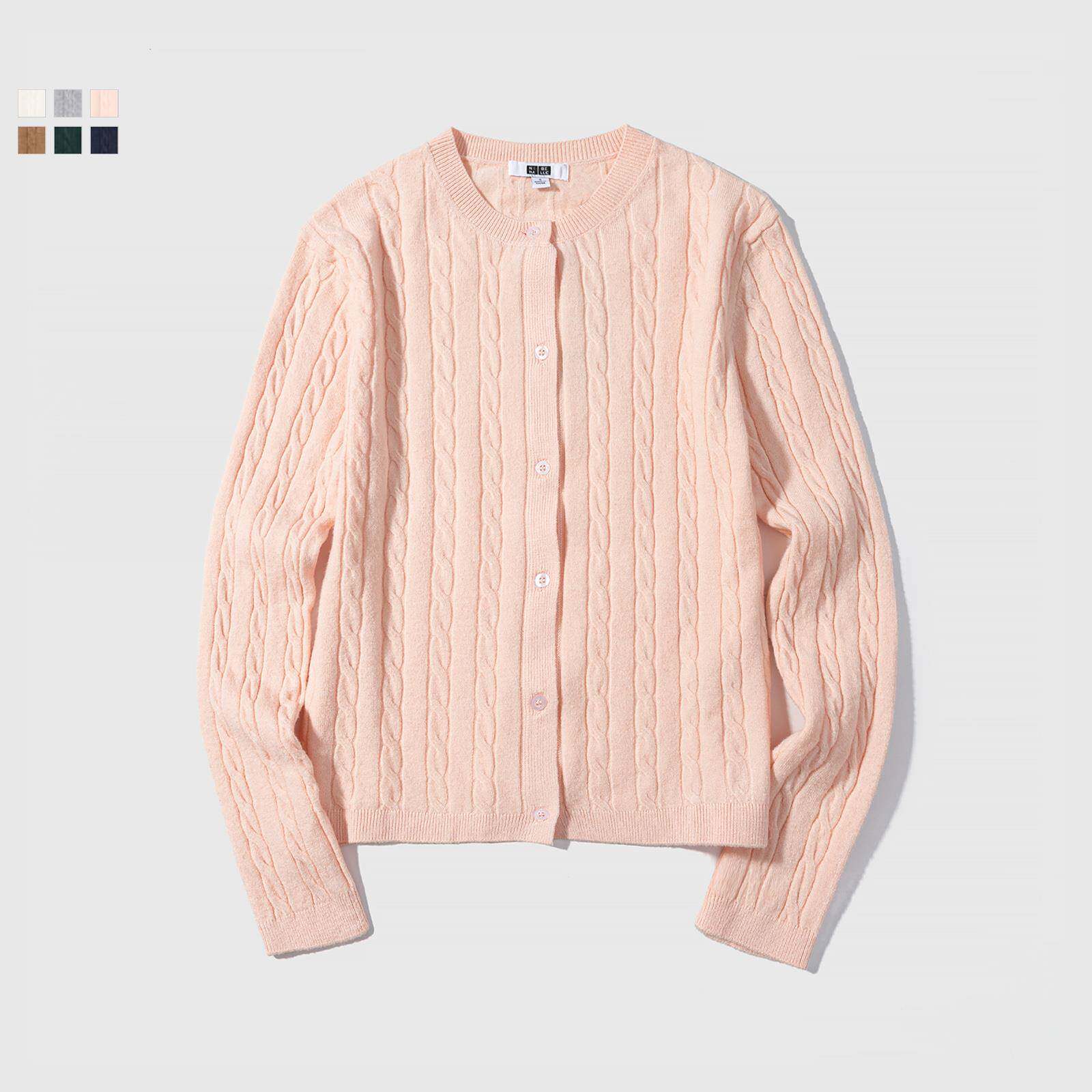 女装纽花圆领针织开衫毛衣外套新款空调衫通勤秋冬新款上衣481477
