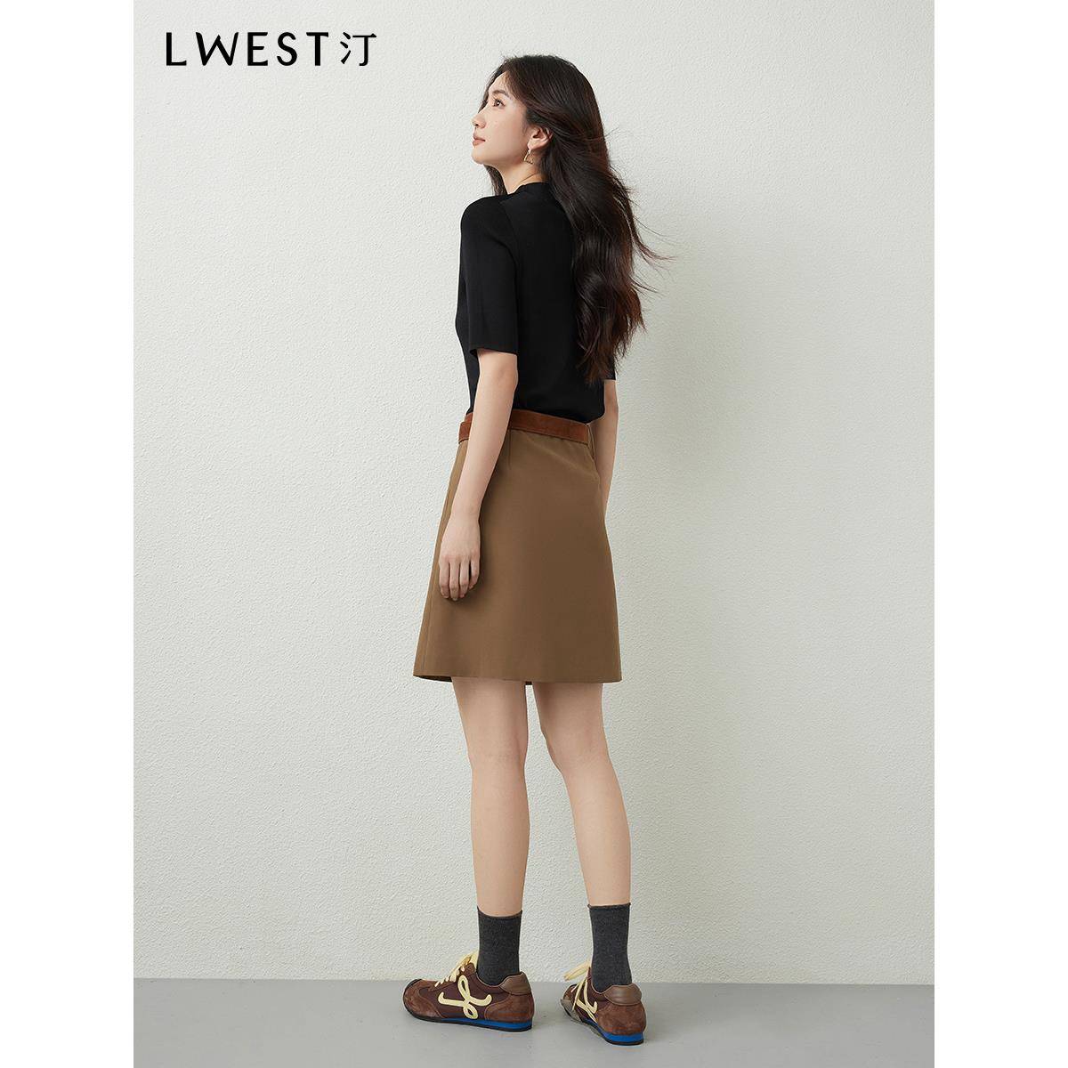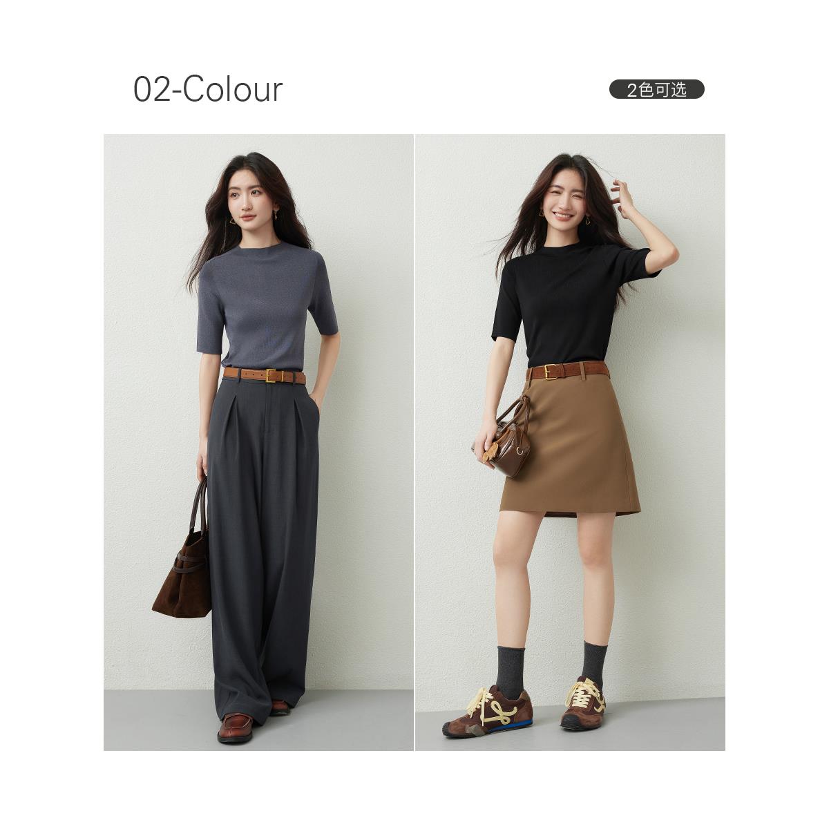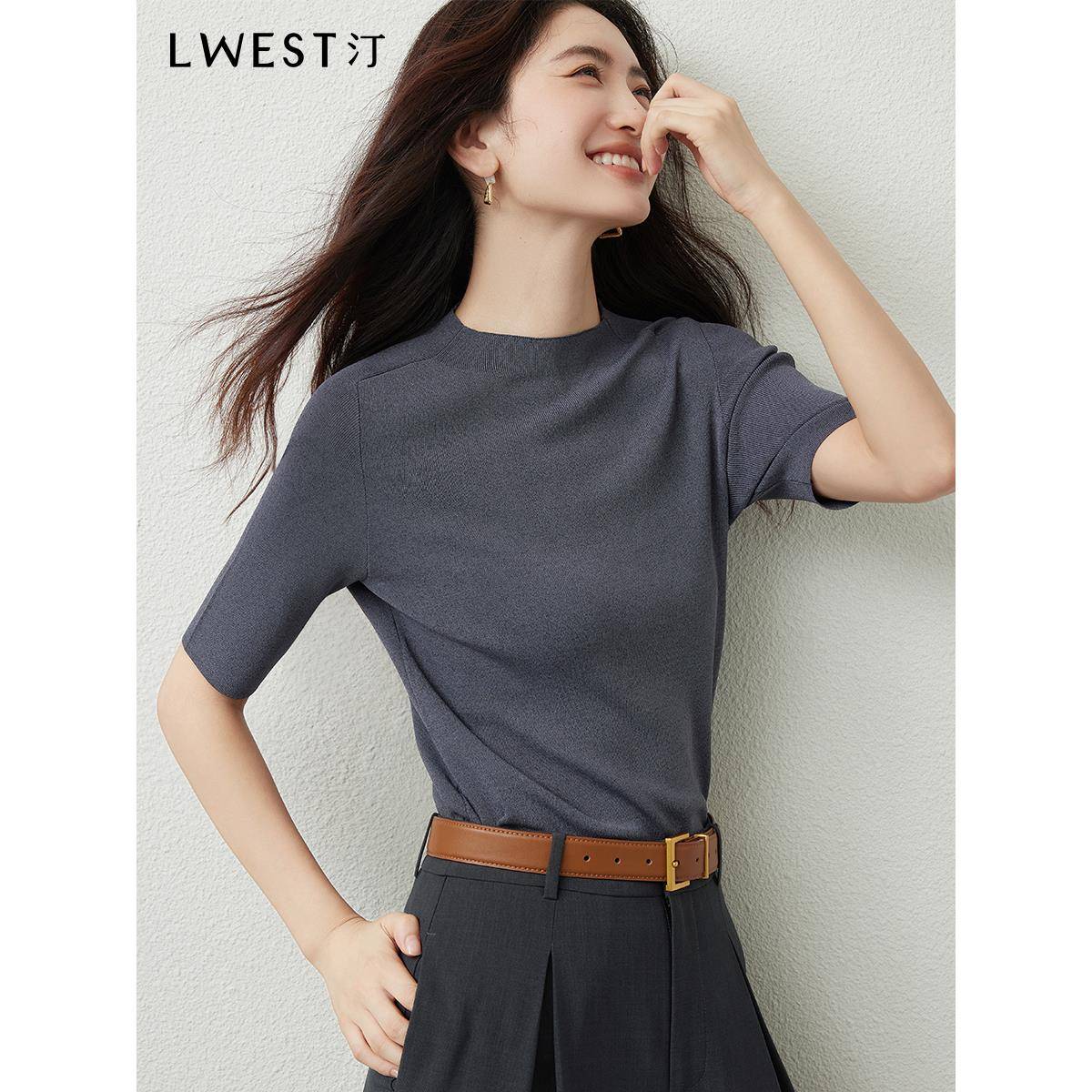 朗文斯汀半高领针织衫女2025秋季新款简约基础款修身显瘦半袖上衣