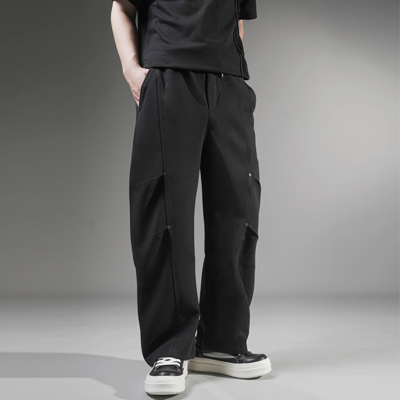 2025新款秋季休闲裤男时尚百搭抽绳腰带设计纯色直筒阔腿裤长裤子