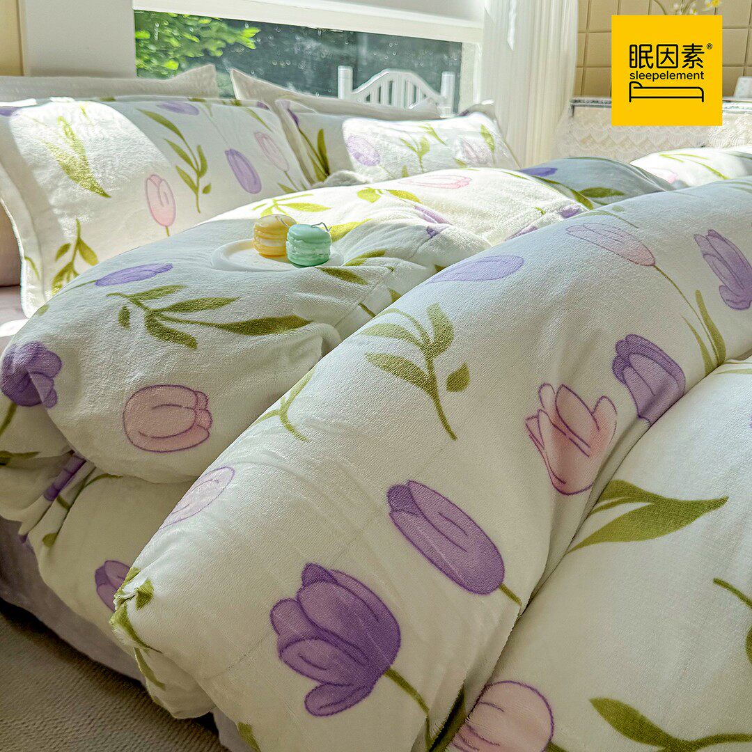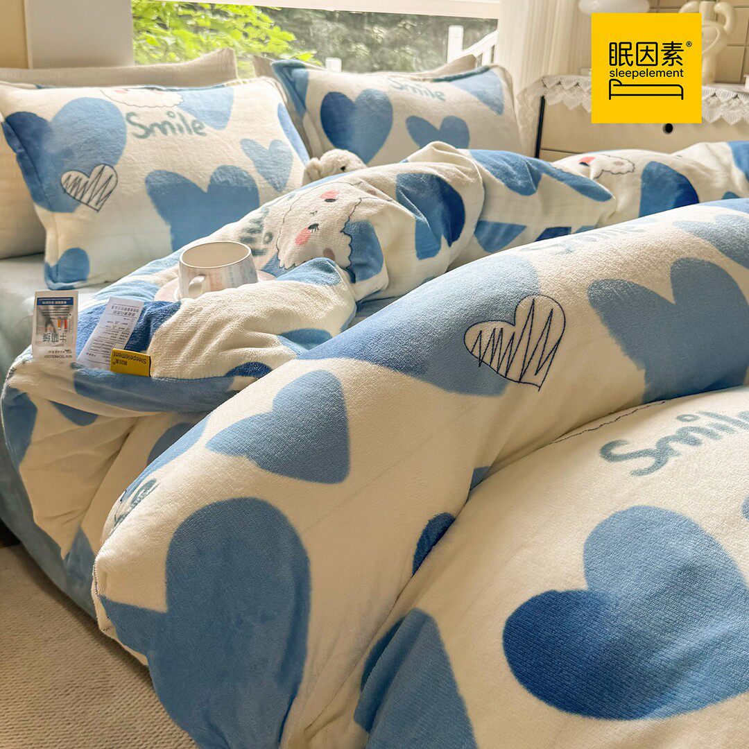 眠因素2025冬季加厚牛奶绒双面绒四件套加厚印花学生宿舍