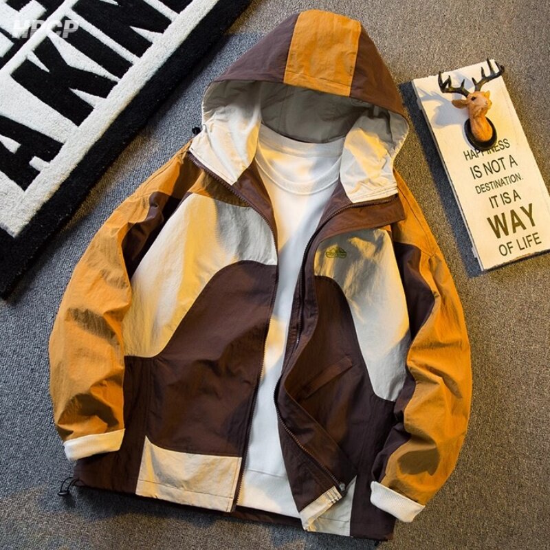 2025年春秋季新款户外冲锋衣情侣款拼接撞色登山服休闲夹克外套