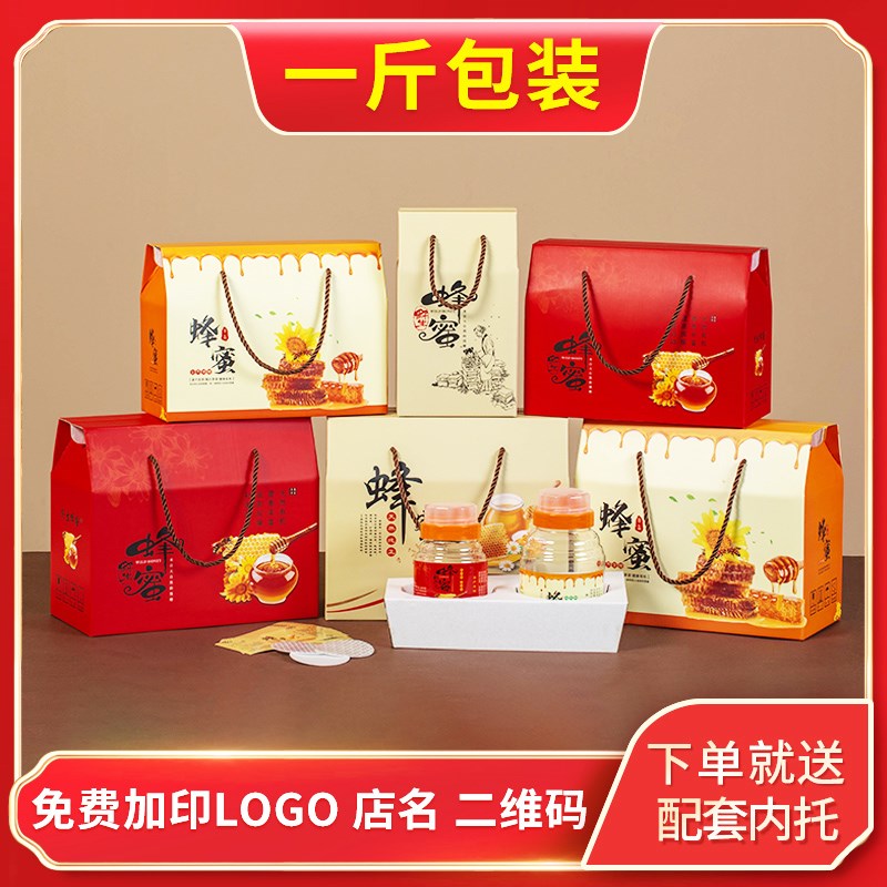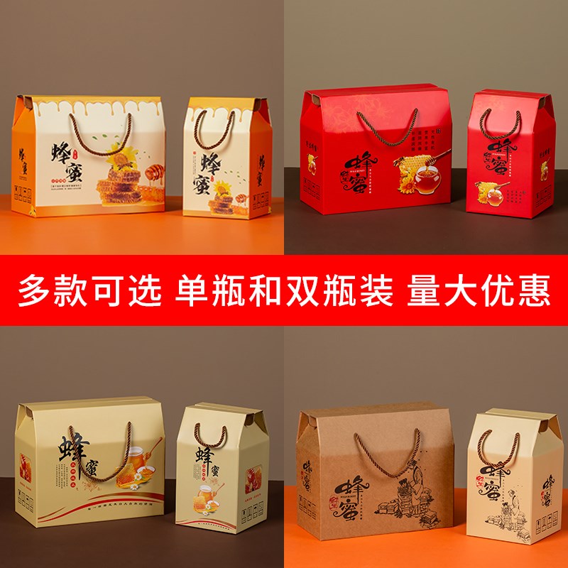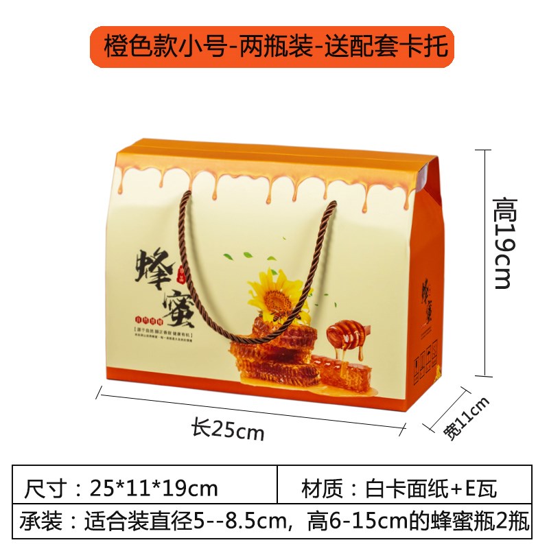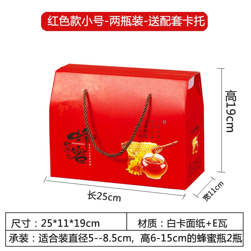 新款蜂蜜包装盒礼盒空盒 含瓶标签红橙色野生土蜂蜜礼品盒
