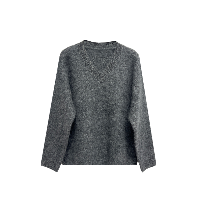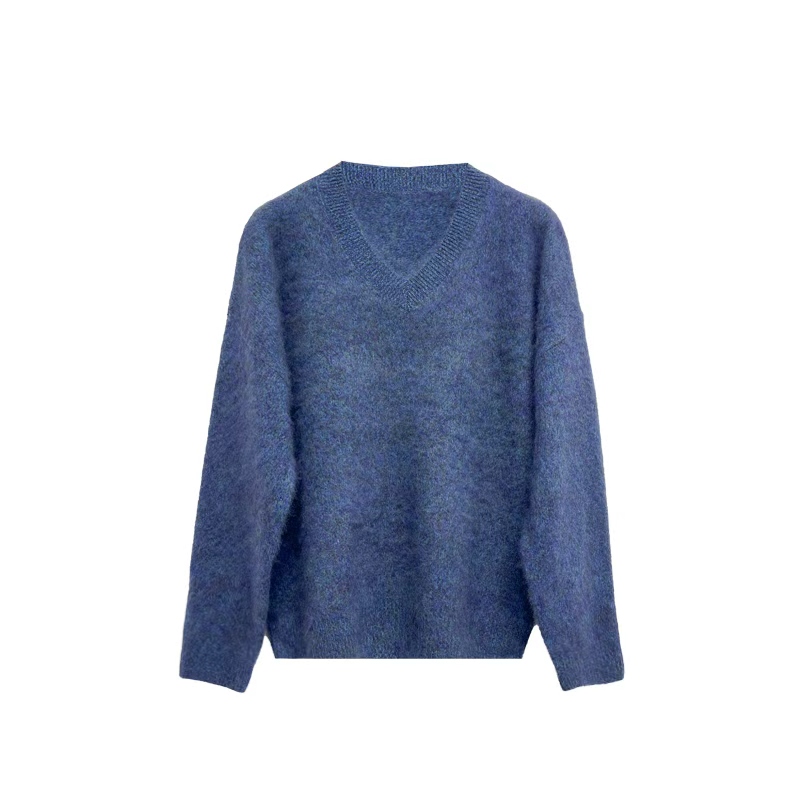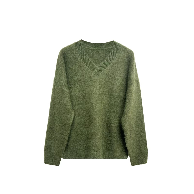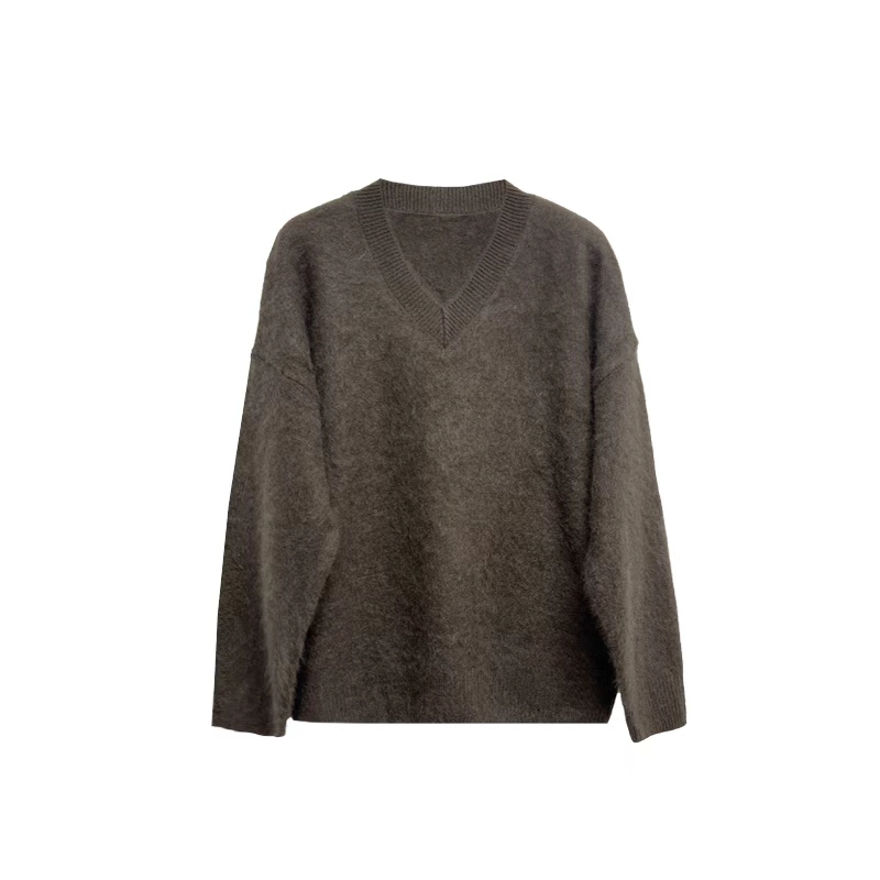 【橙庐】510828慵懒风拉绒V领绵羊毛山羊绒针织衫 秋冬女时尚百搭