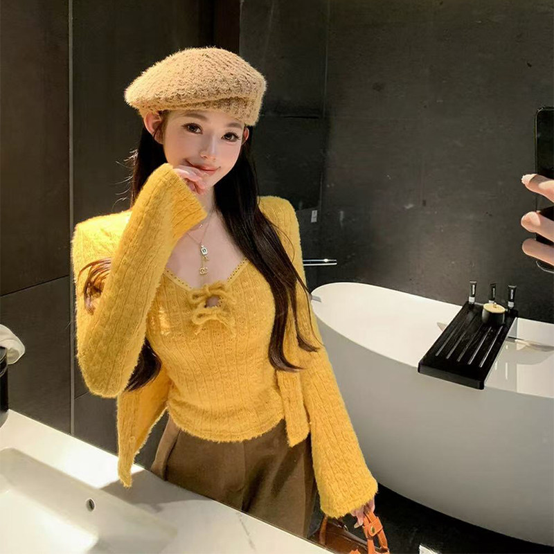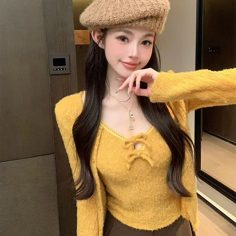 实体档口韩系穿搭2025秋季新款温柔风软糯针织开衫吊带背心两件套
