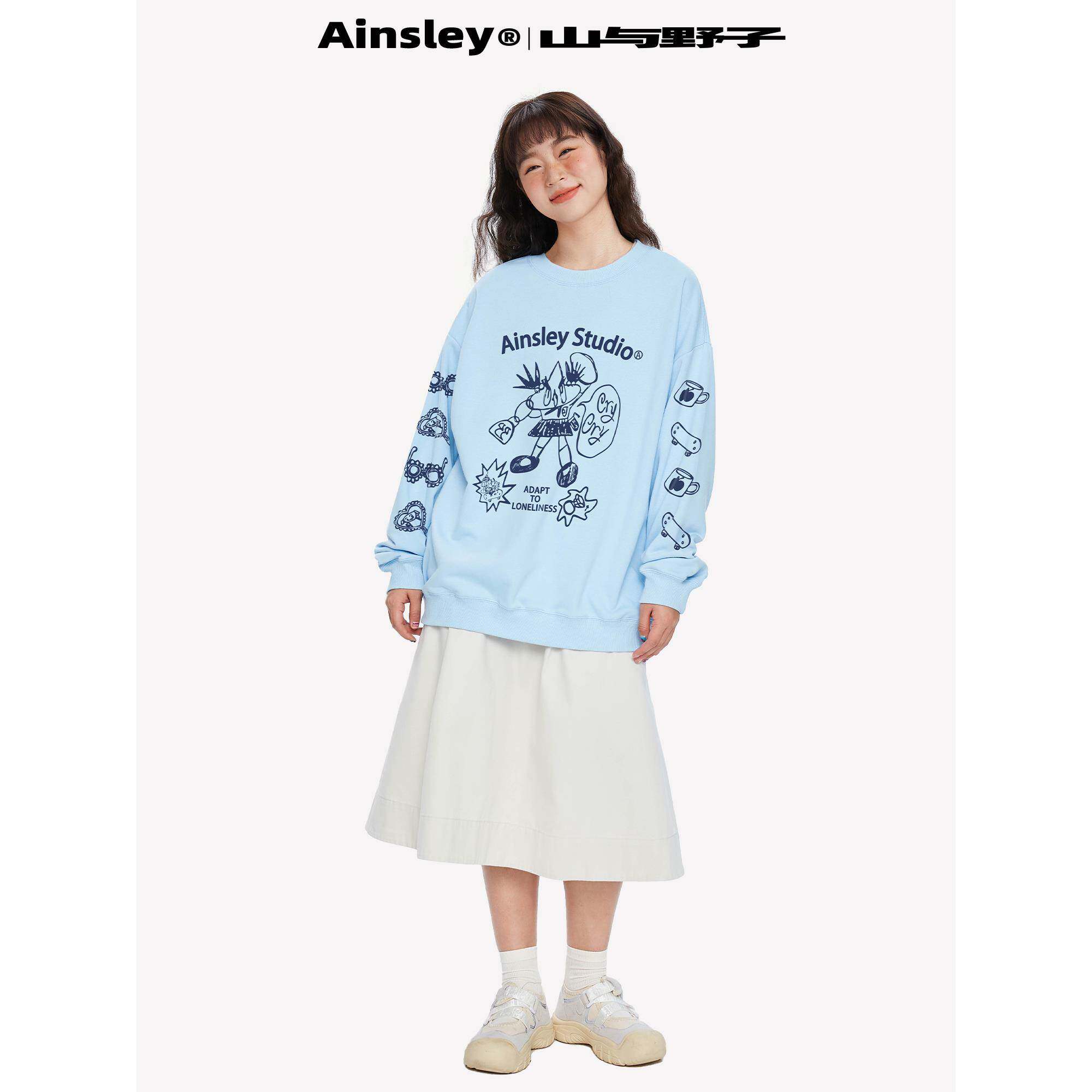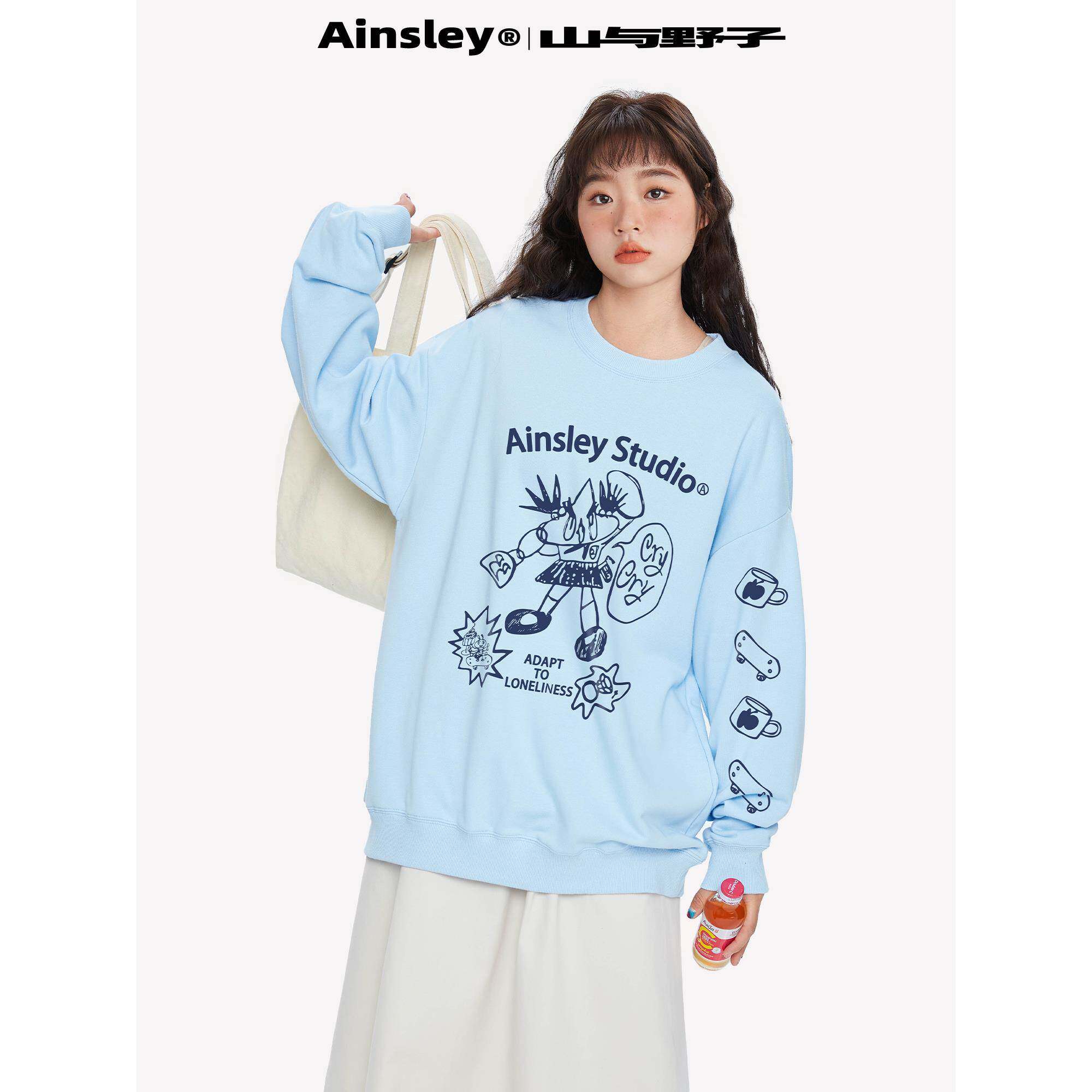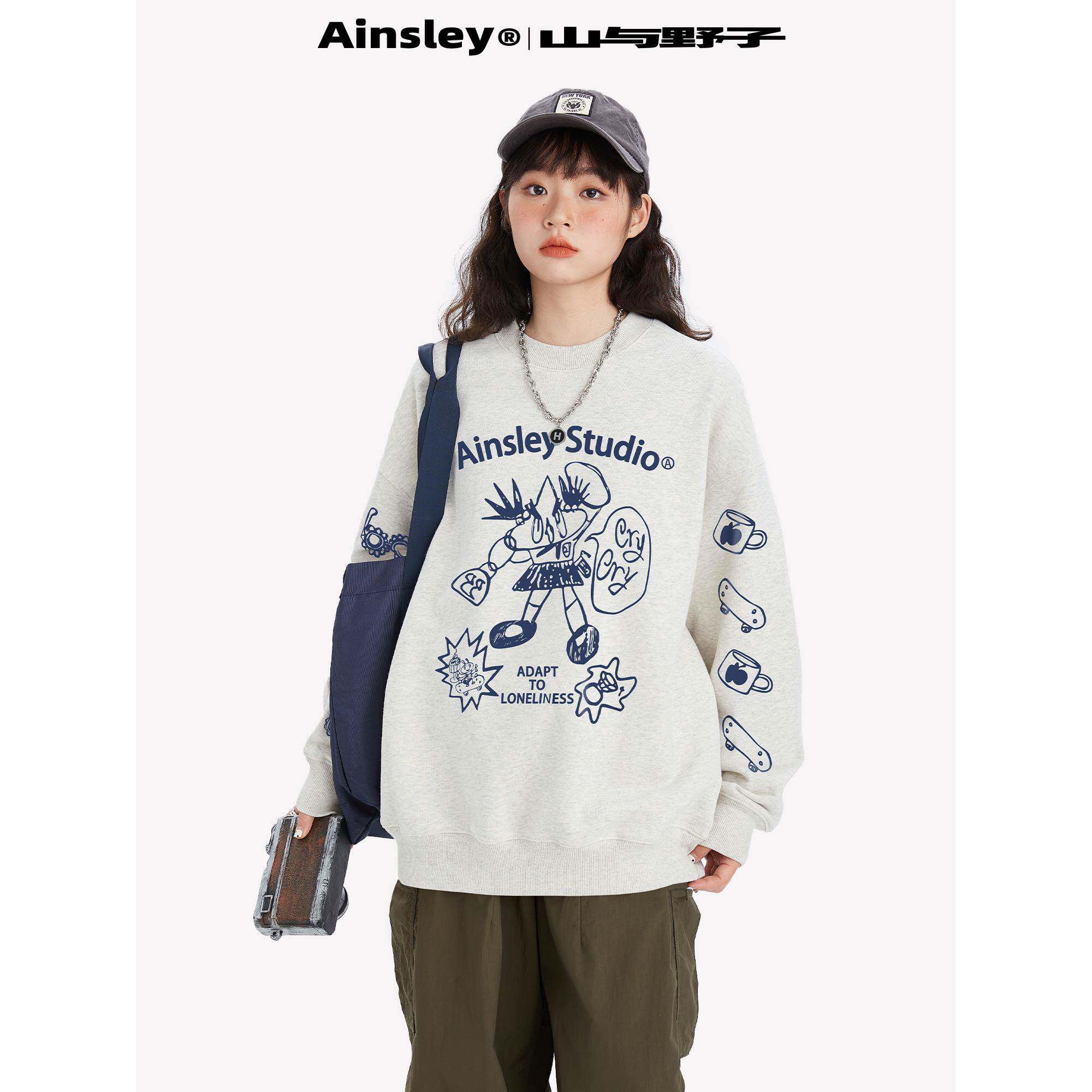 山与野子 趣味插画印花套头加绒加厚卫衣女春秋情侣长袖上衣潮