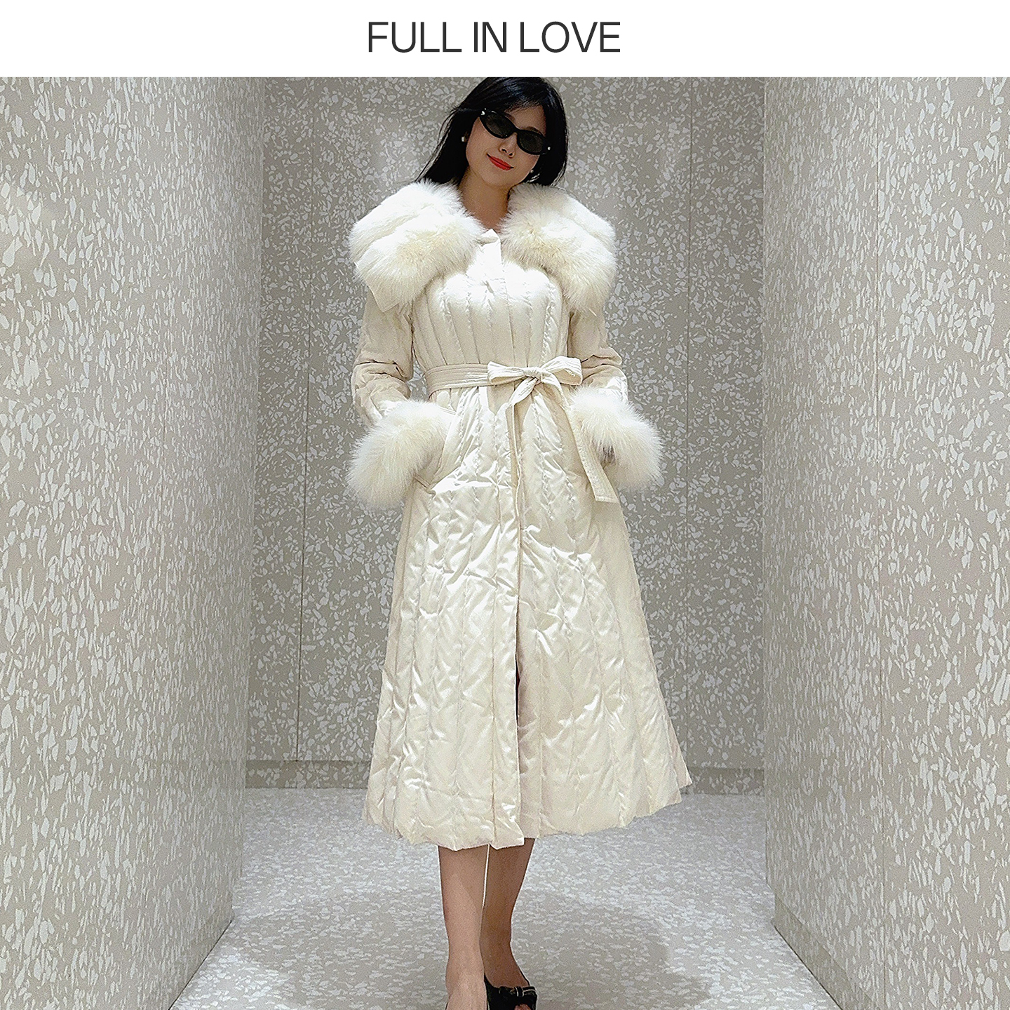 爱意满满白毛领鹅绒服2025新款时尚百搭女款羽绒服长款保暖羽绒服