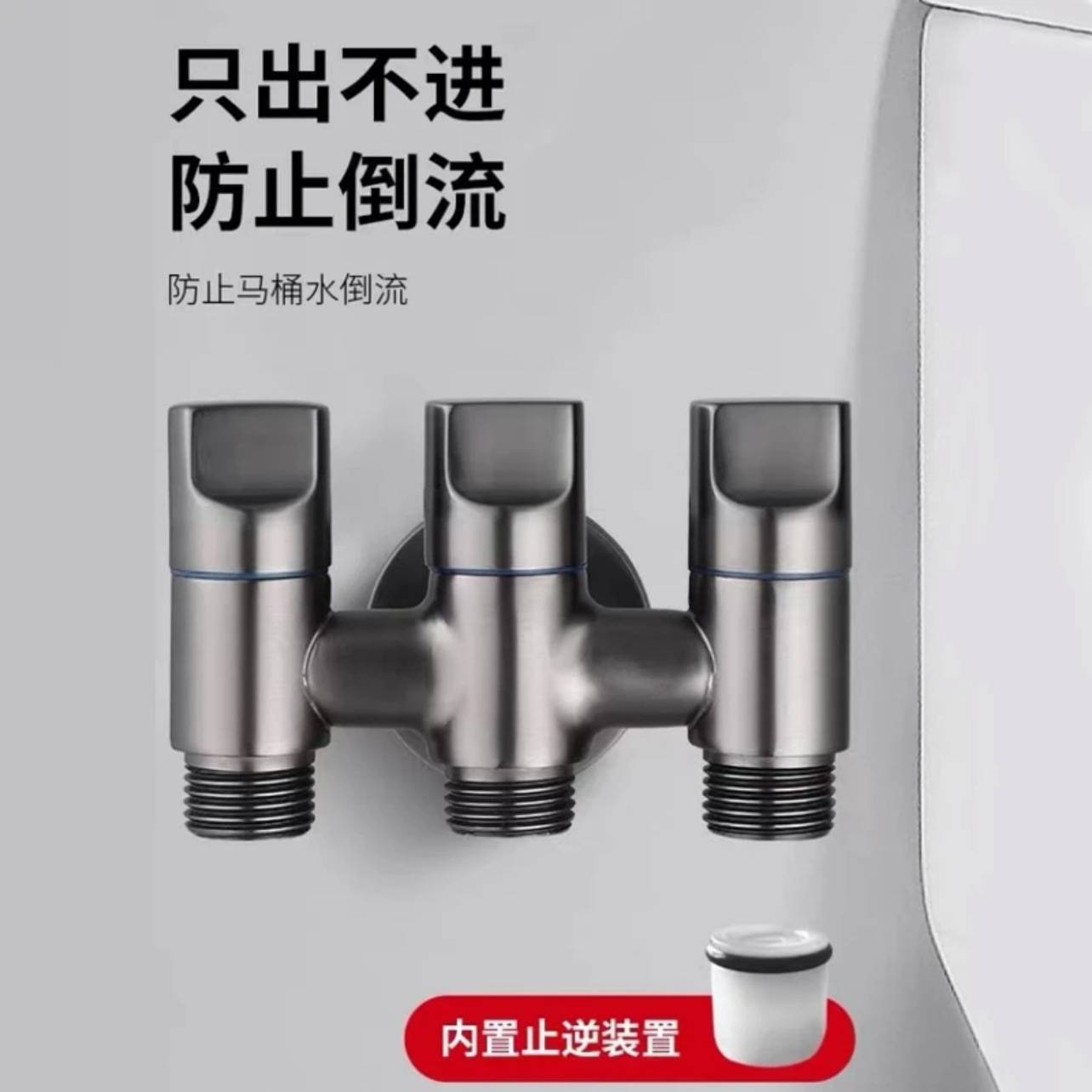 铜材质一进三出角阀三通四通多功能喷枪马桶分水阀器洗衣机水龙头