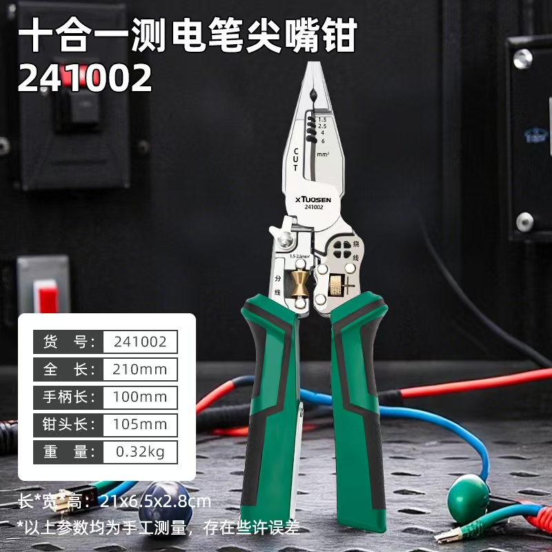 拓森十合一带测电笔剥线多功能尖嘴剥线钳可调节分线绕线压线剪切