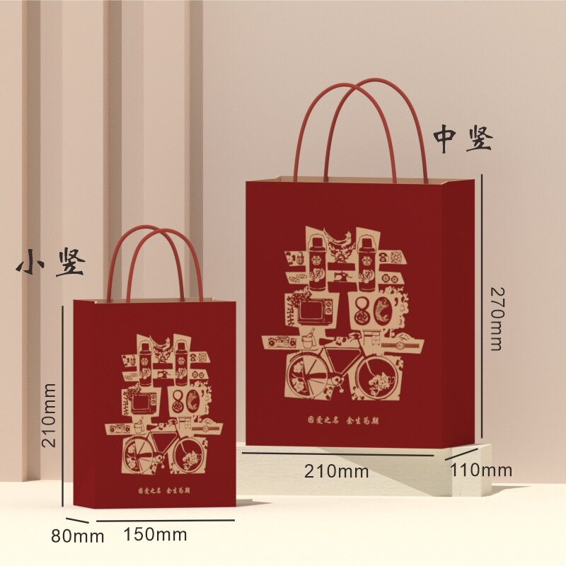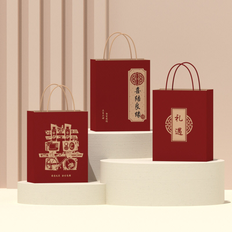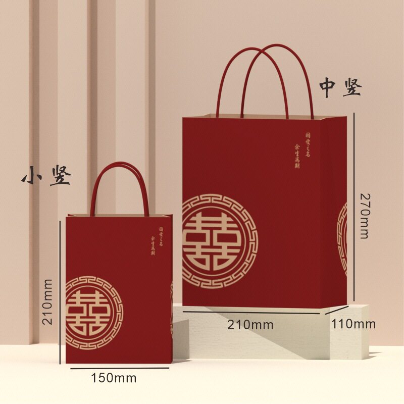 B616结婚礼品袋牛皮纸手提袋伴手礼回礼专用喜糖果纸袋免折叠喜庆