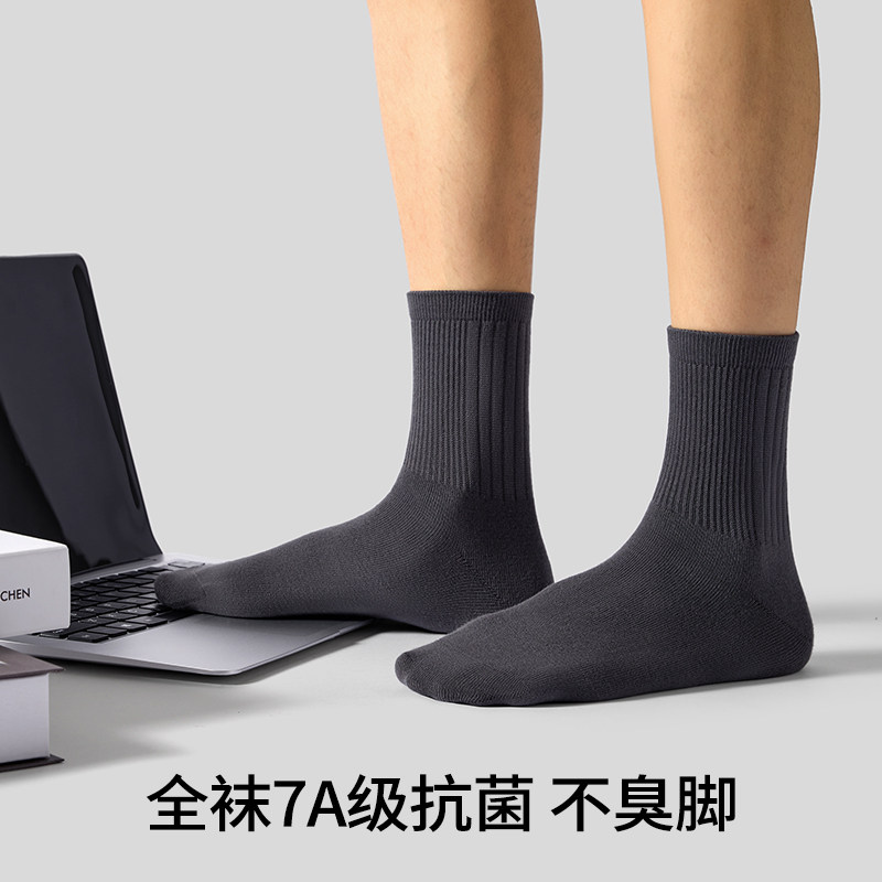 MENXX袜子男中筒袜秋冬黑色7A抗菌防臭吸汗纯新疆棉白色男生长袜