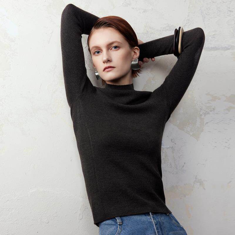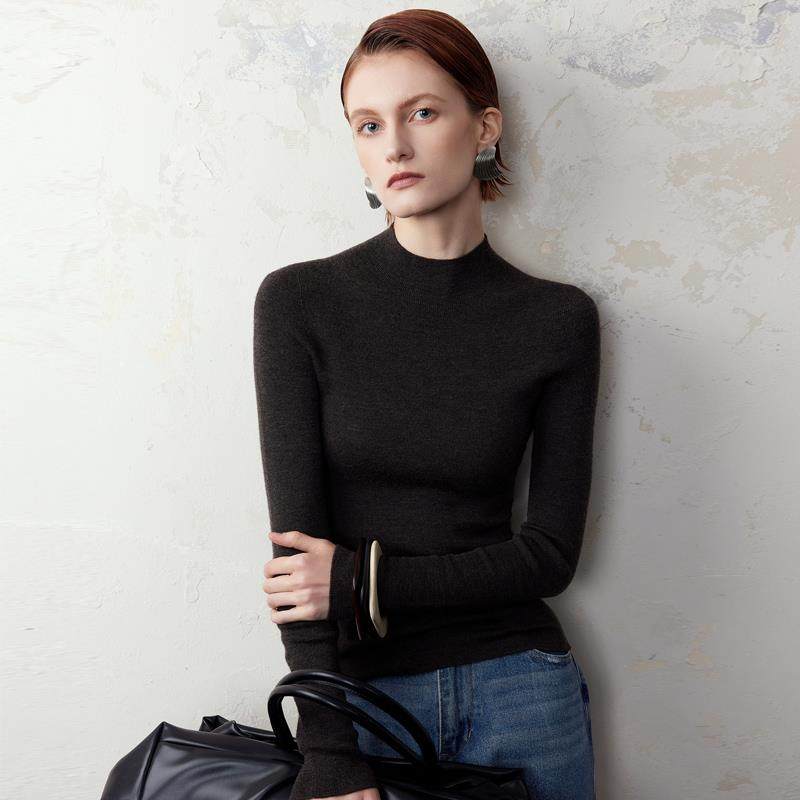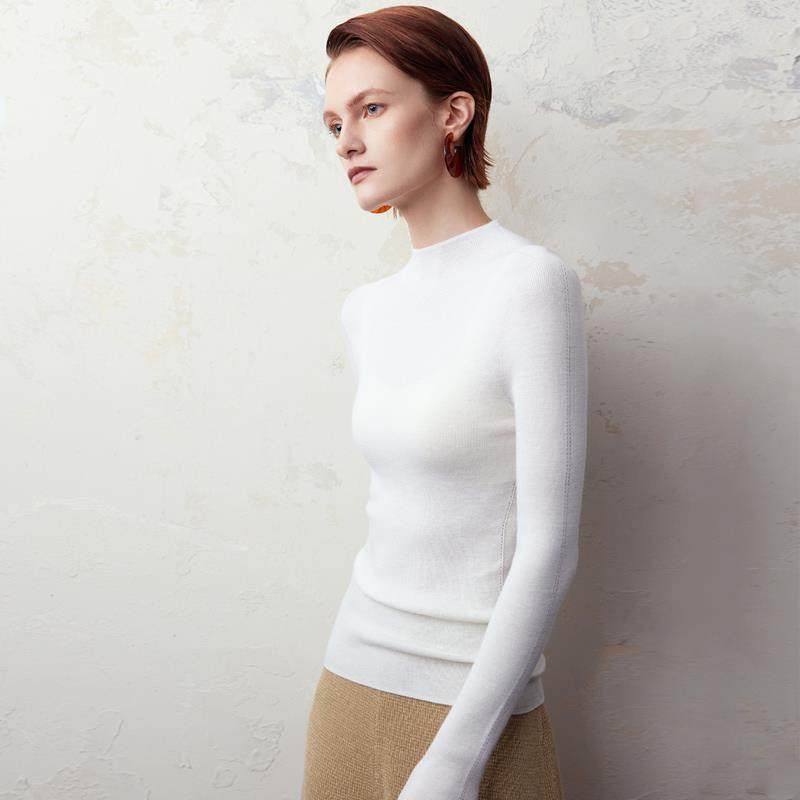 无缝精纺160s可机洗半高领羊毛衫女秋冬保暖毛衣内搭针织打底衫女