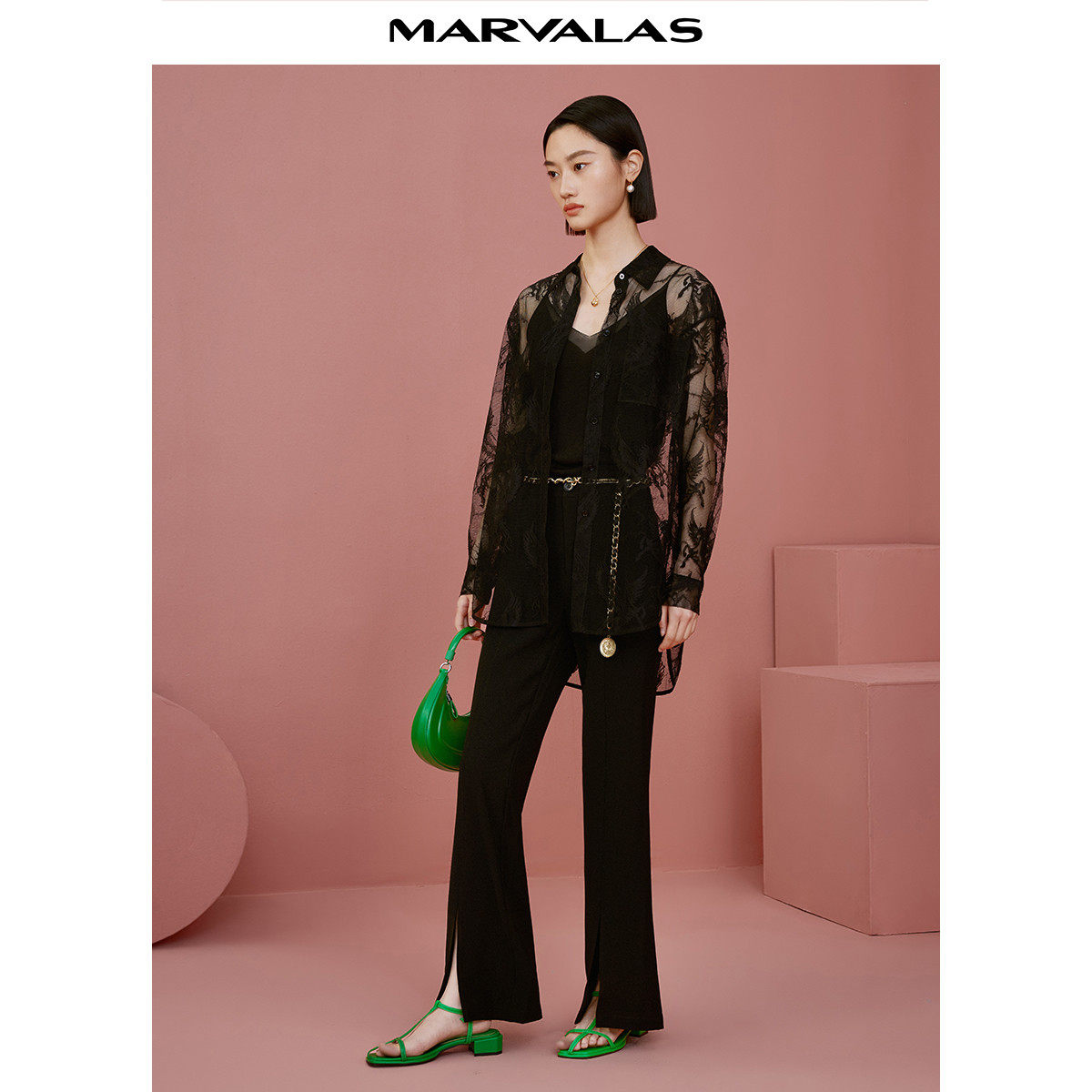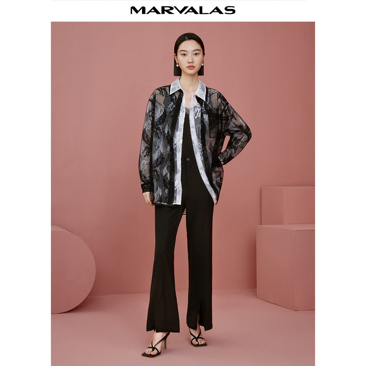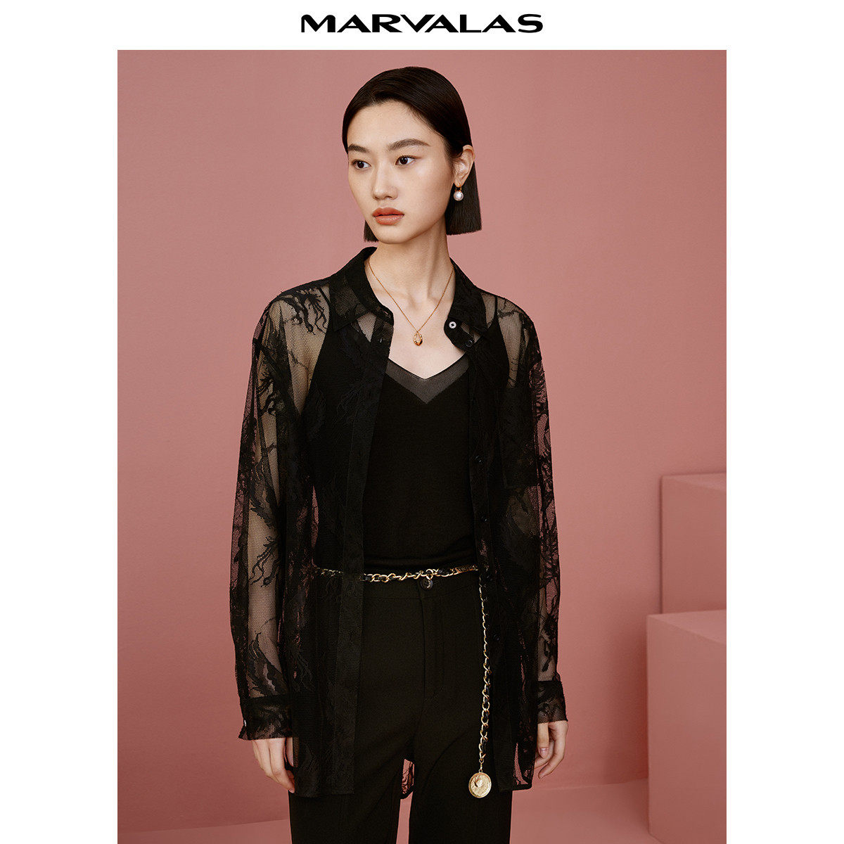 【廖廖粉丝专属】早春浪漫蕾丝提花衬衫春季网纱镂空