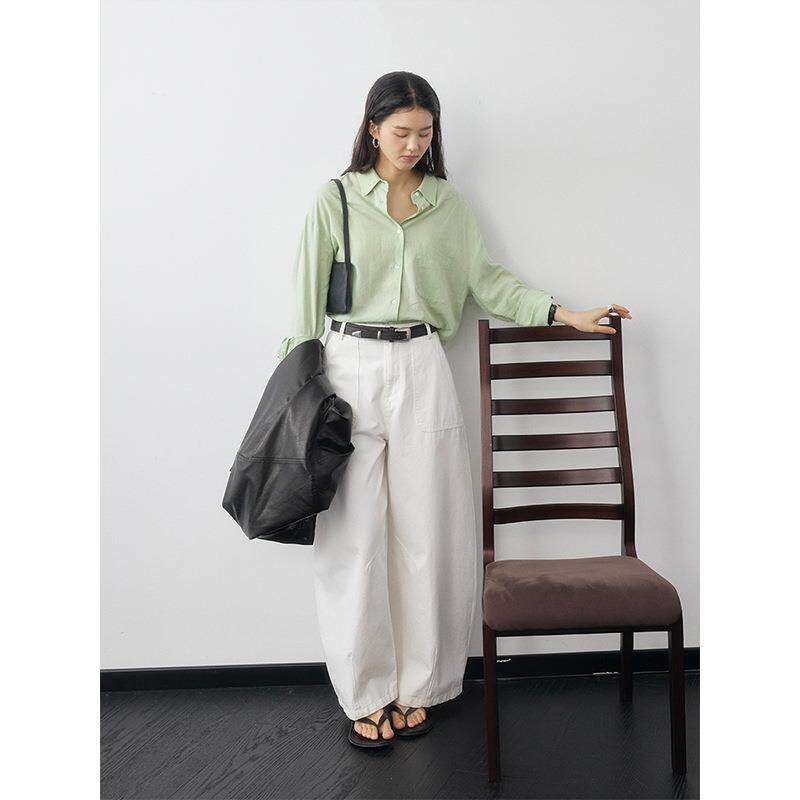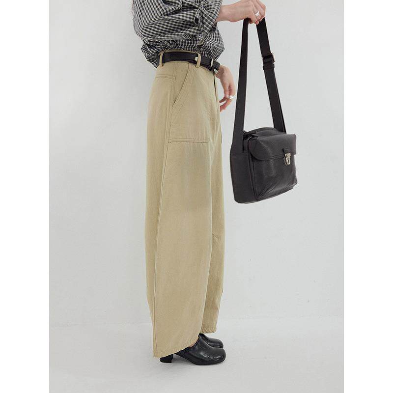 时简 梨形天菜 高腰廓形遮肉显瘦送皮带工装裤春新款休闲裤90220
