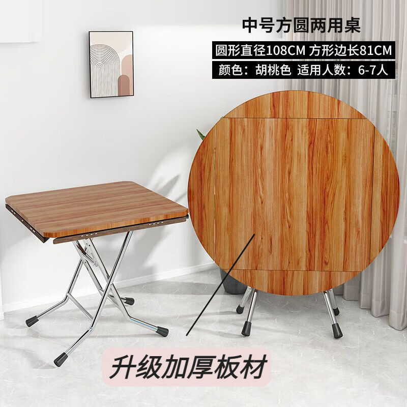 折叠桌餐桌家用可折叠简易圆桌子4人8小户型可折叠正方形吃饭