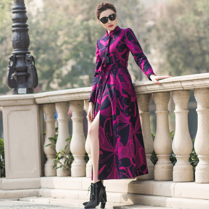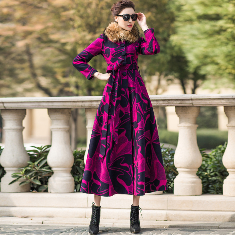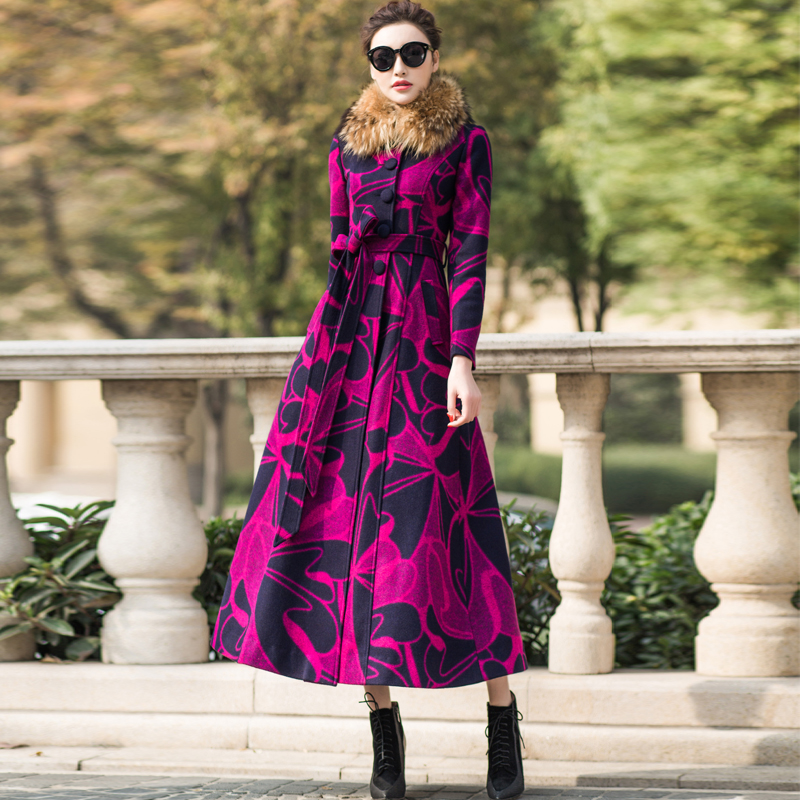 2025羊绒大衣女超长款过膝修身大衣加厚玫瑰花色羊毛呢子外套