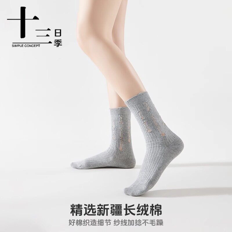 十三日季女士破洞乞丐堆堆袜春夏季纯棉抑菌防臭吸汗薄款中筒袜子