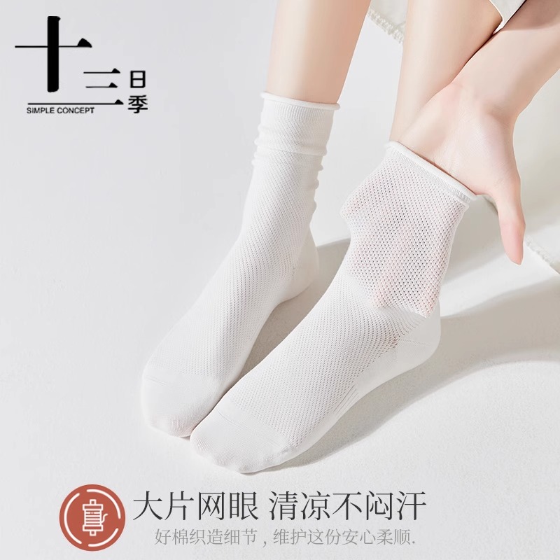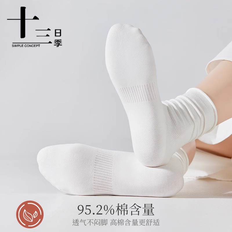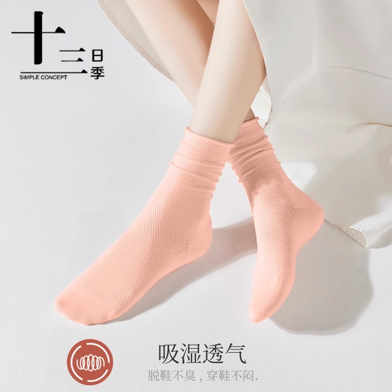 十三日季女士堆堆袜春夏季纯棉吸汗透气直角跟抑菌防臭中长筒袜子