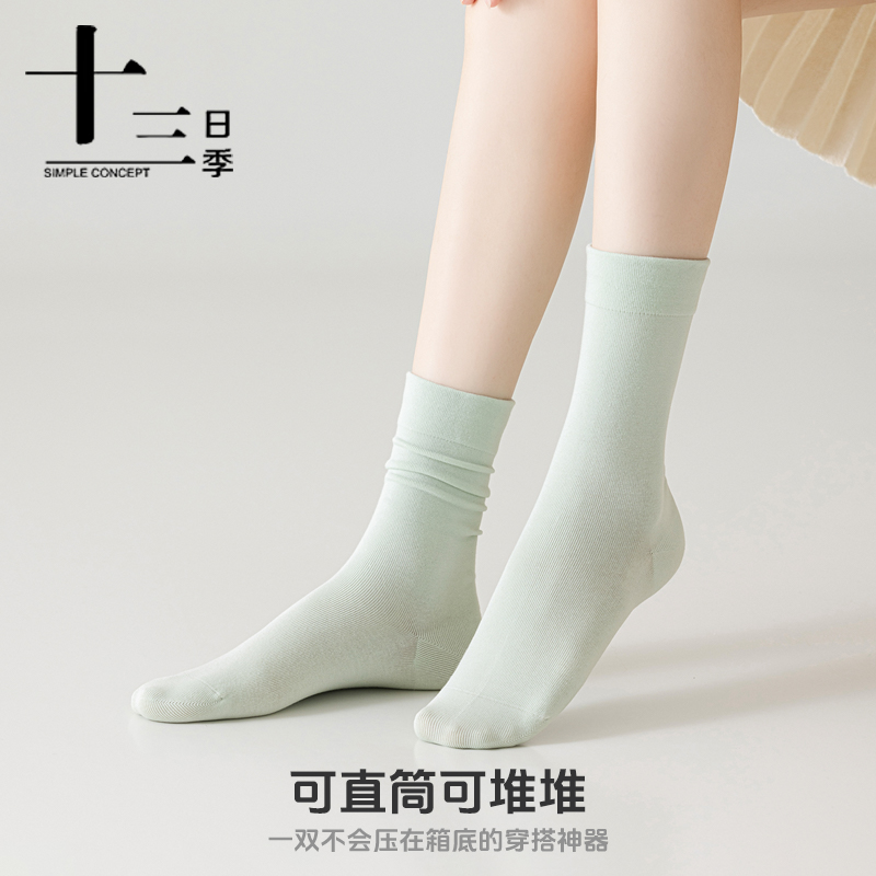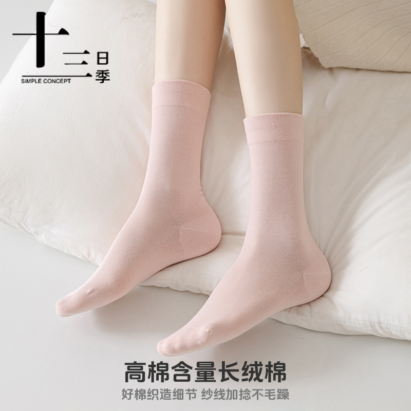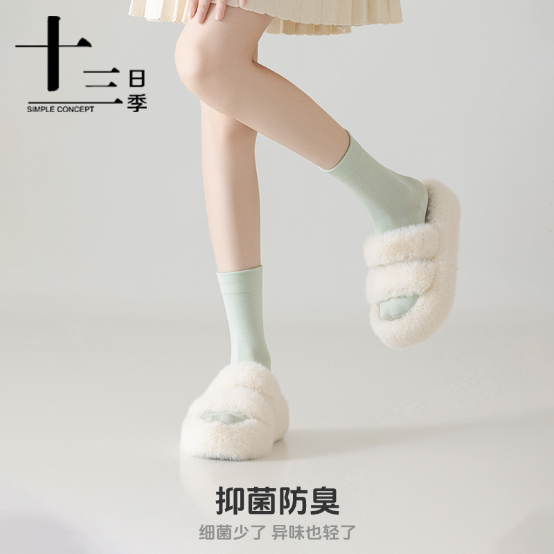 十三日季女士月子袜春夏季纯棉抑菌吸汗透气防臭吸无骨堆堆中筒袜