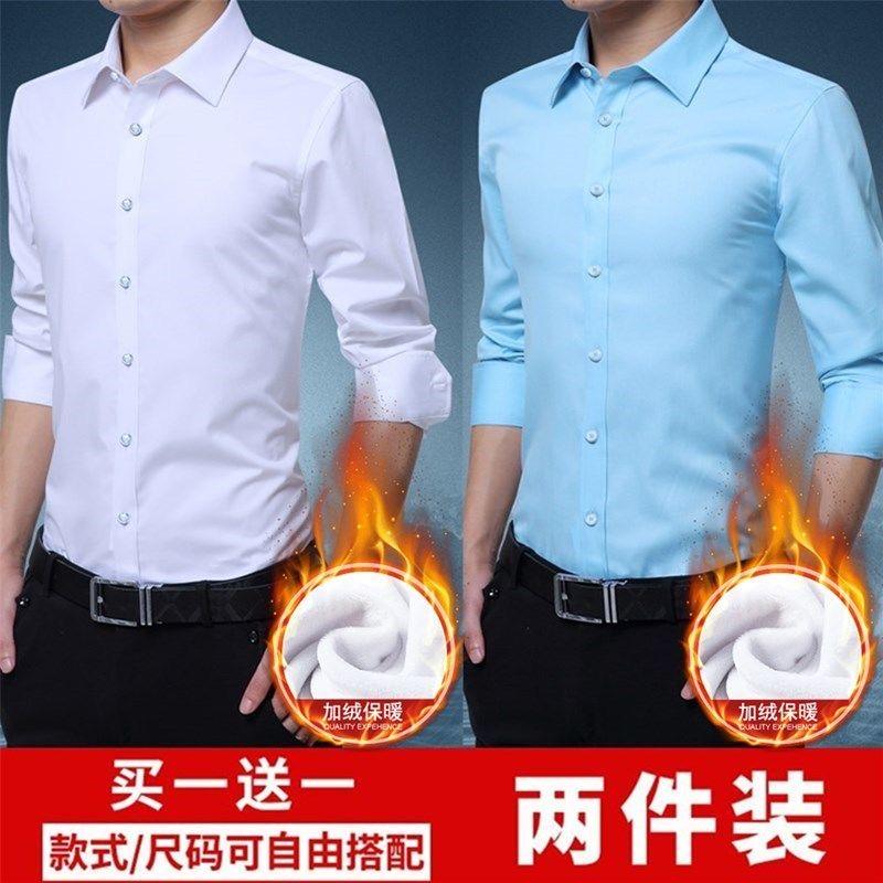 秋冬季加绒加厚衬衫男修身韩版商务职业正装保暖白衬衣青少年工装