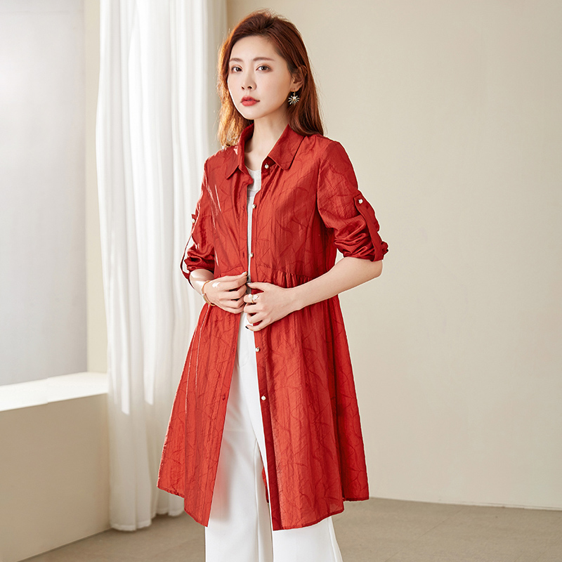 丁摩春秋新款中长款衬衫女士薄款防晒衬衣外套外披开衫Q121180
