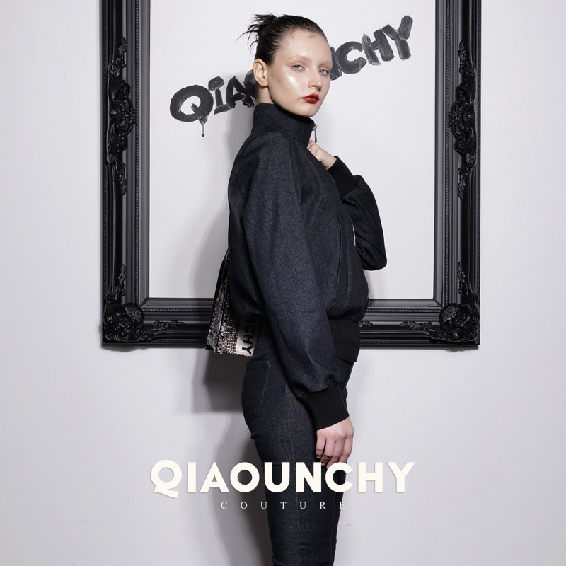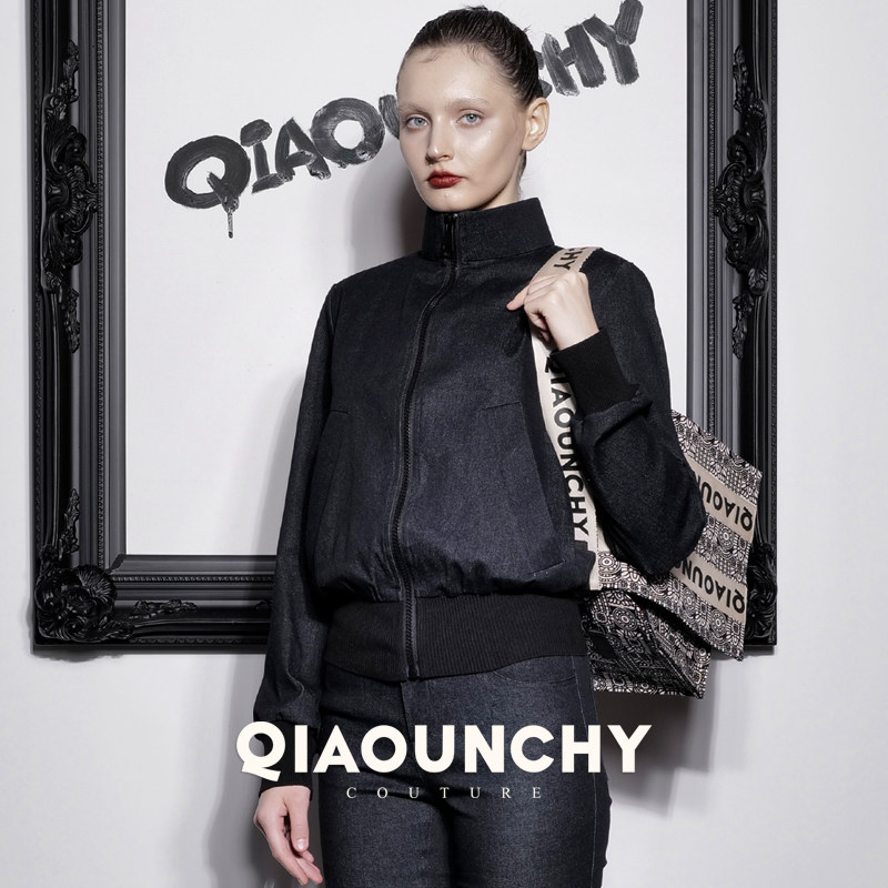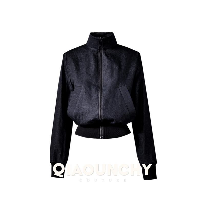 女绅士 QIAOUNCHY俏云曦|修身高领蓝色牛仔洗水棉夹克外套女