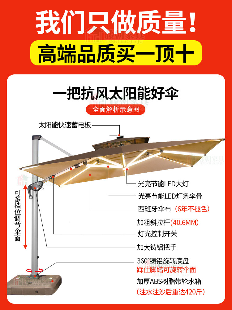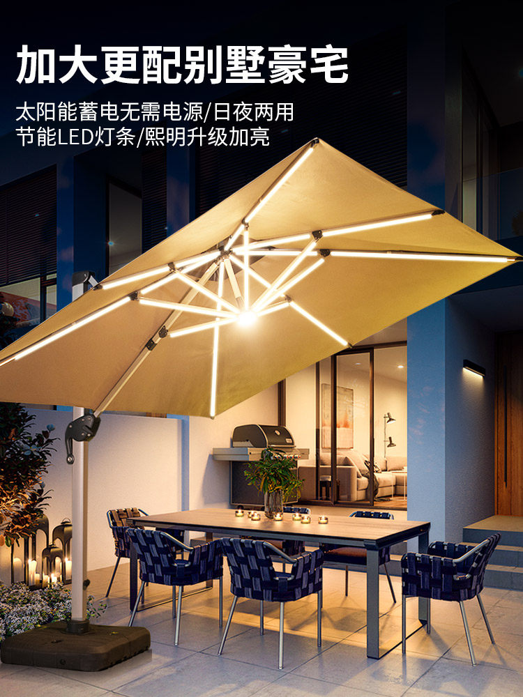 藤朝户外遮阳伞大太阳能伞带灯led花园别墅庭院伞露台室外罗马伞