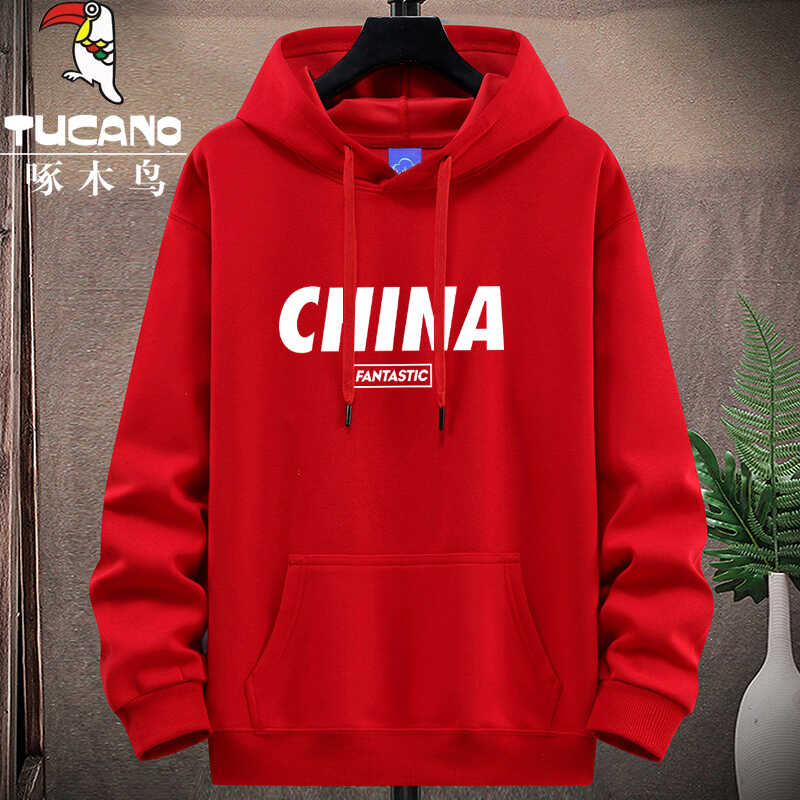 啄木鸟连帽卫衣男春秋外套韩版帽衫青少年学生印花加绒卫衣百搭