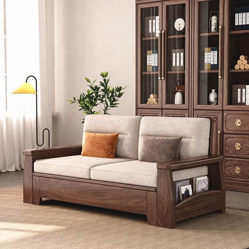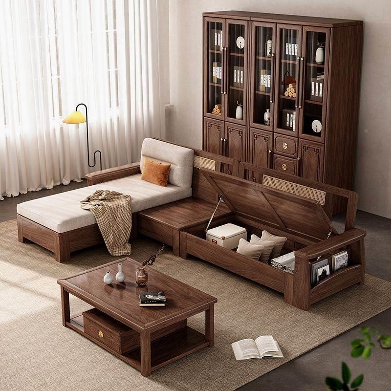 黑胡桃木新中式实木沙发组合储物现代客厅冬夏两用落地式客厅家具