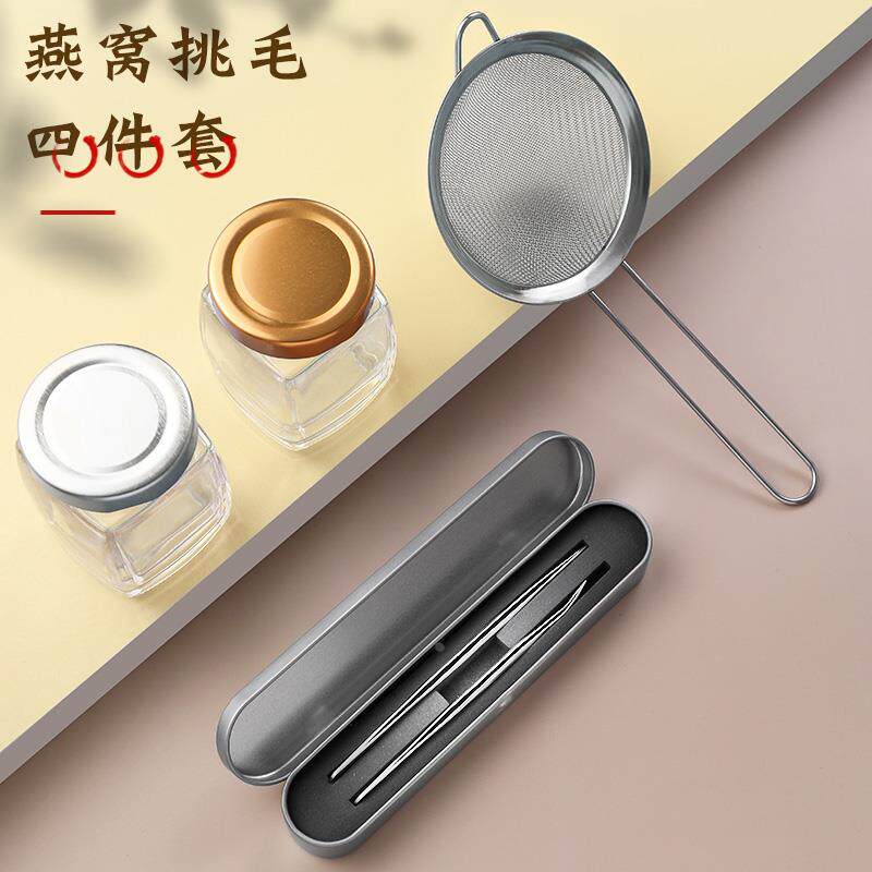 不锈钢燕窝挑毛工具挑夹毛神器三件套夹子洗过滤网炖泡发套装镊子
