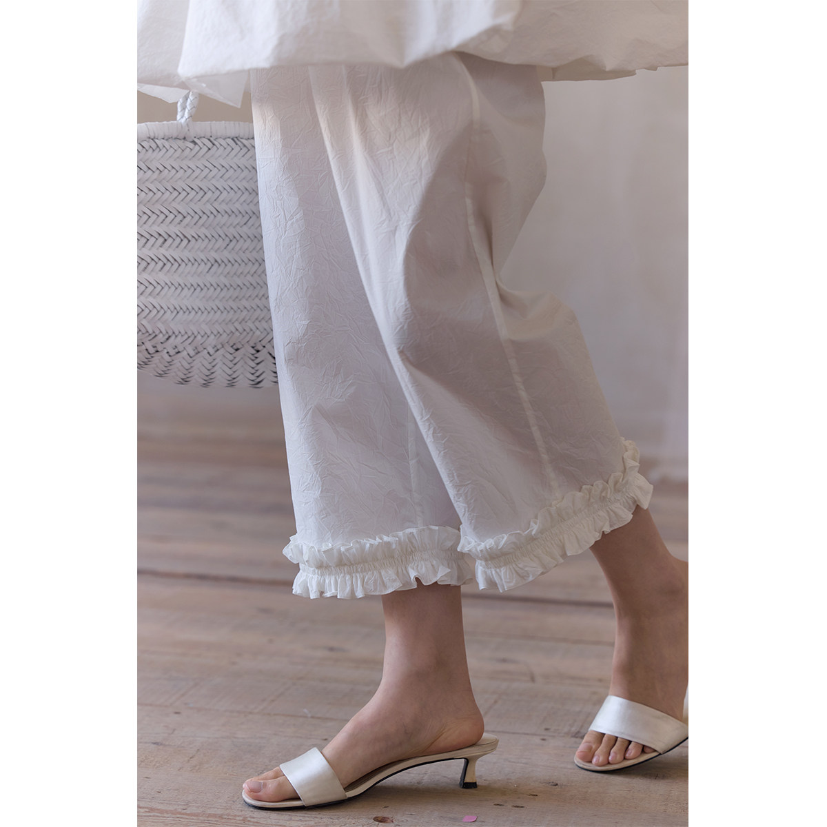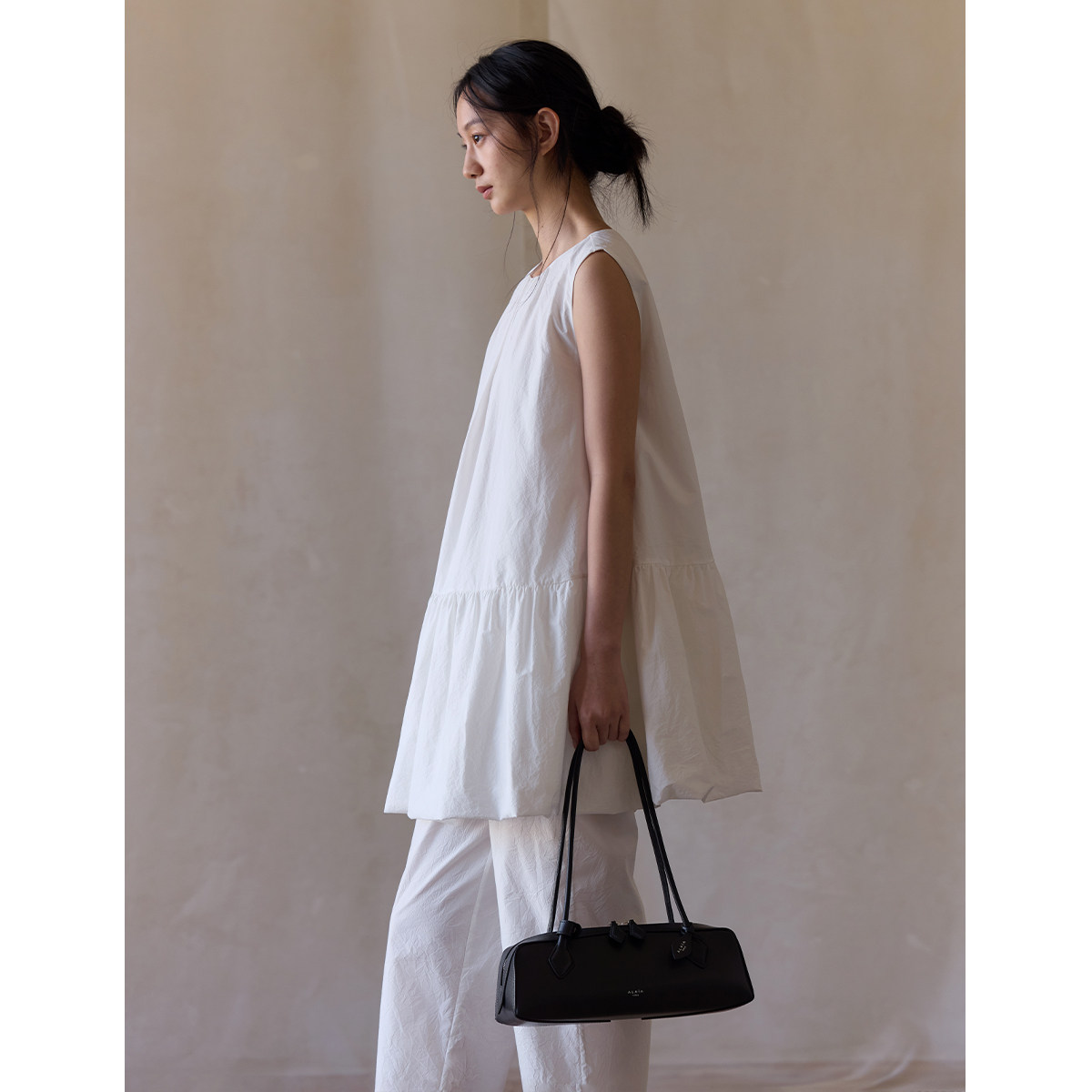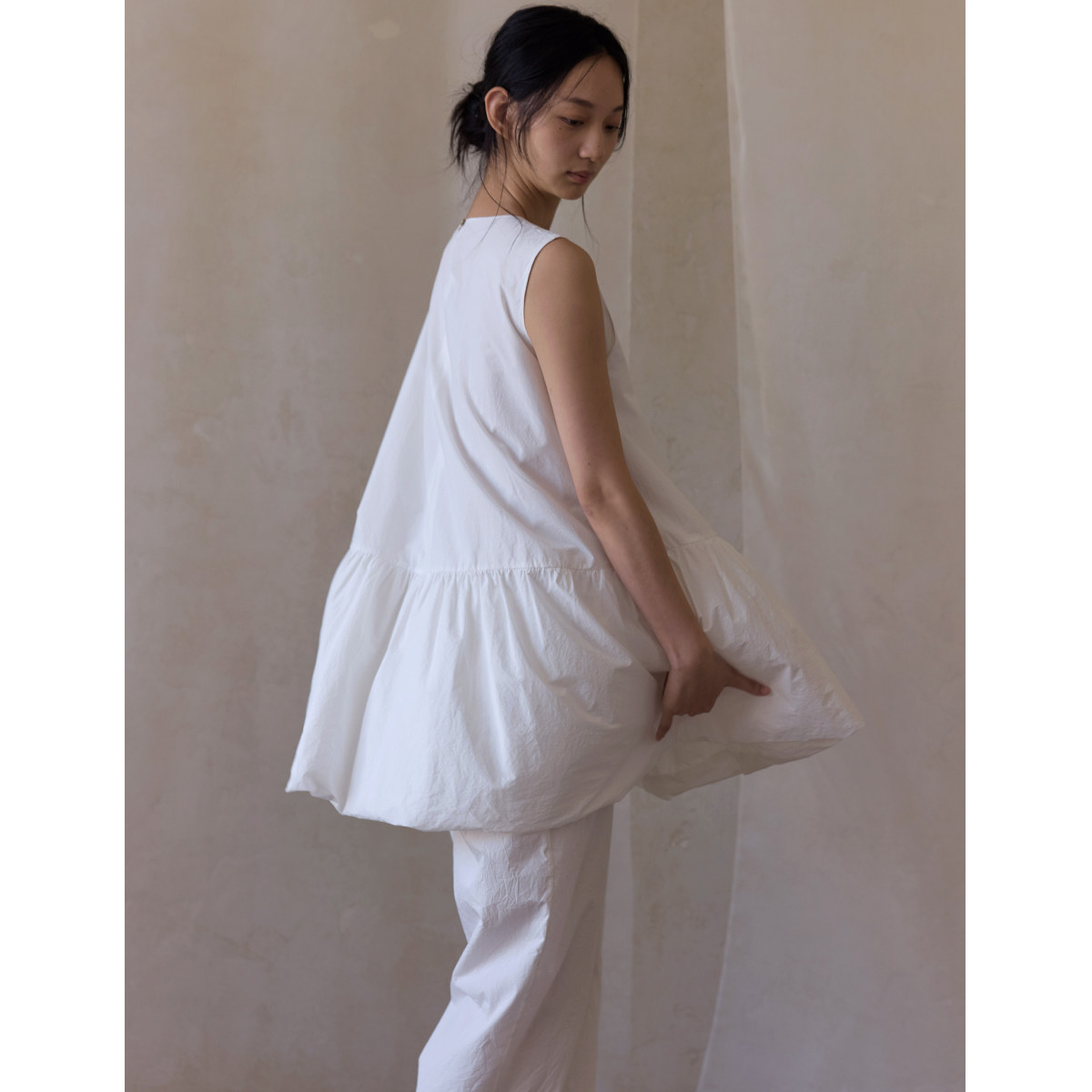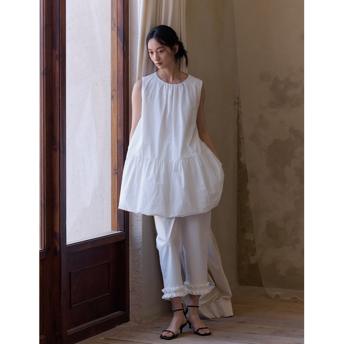 commuse memory 蓬松感 冷白气球下摆无袖上衣+压褶花边脚管长裤