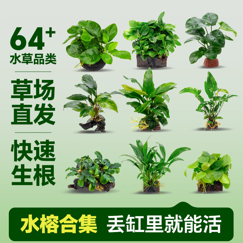 鱼缸造景装饰火山石水草阴性绑沉木水榕迷你懒人活体淡水植物