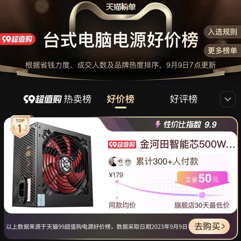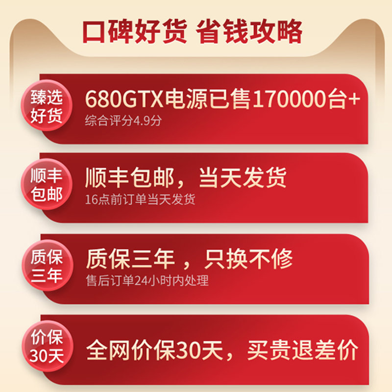 金河田智能芯680GTX台式主机电脑电源500W金全模组650W电源750W