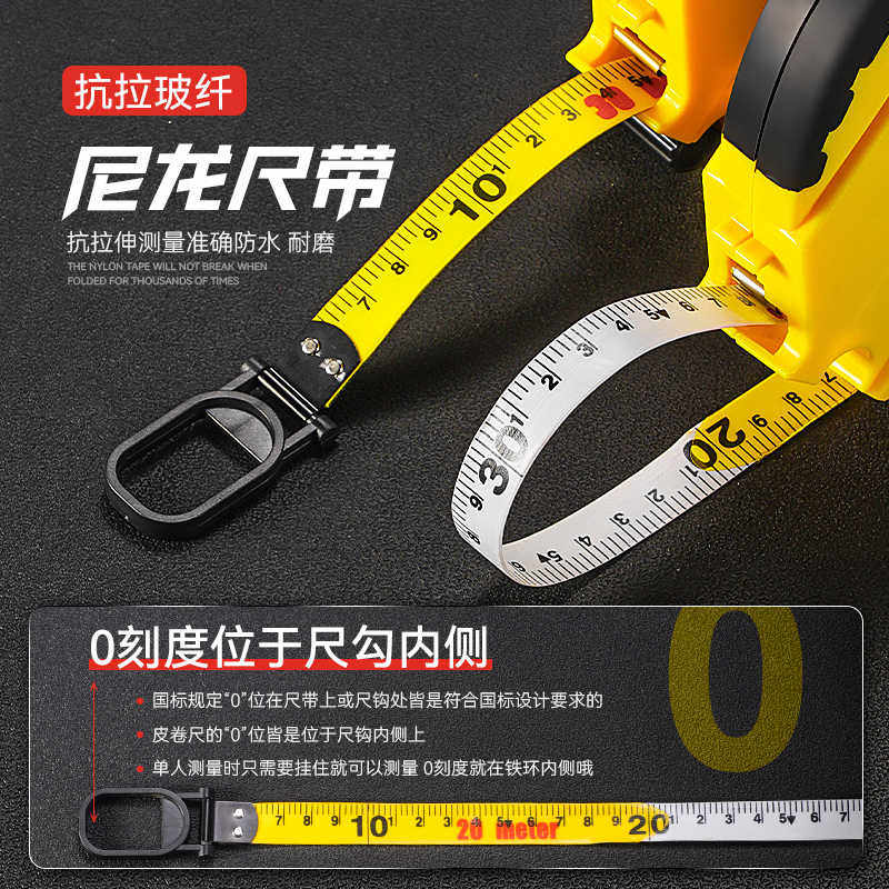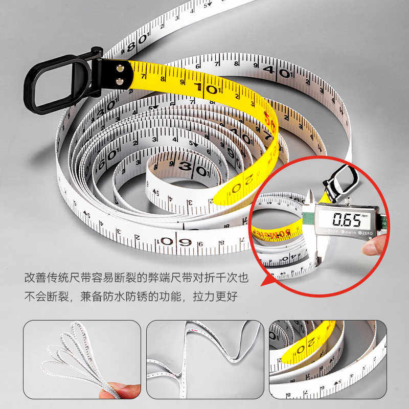 皮卷尺纤维50米土地测量软尺高精准皮尺耐磨工业级包胶防摔布卷尺