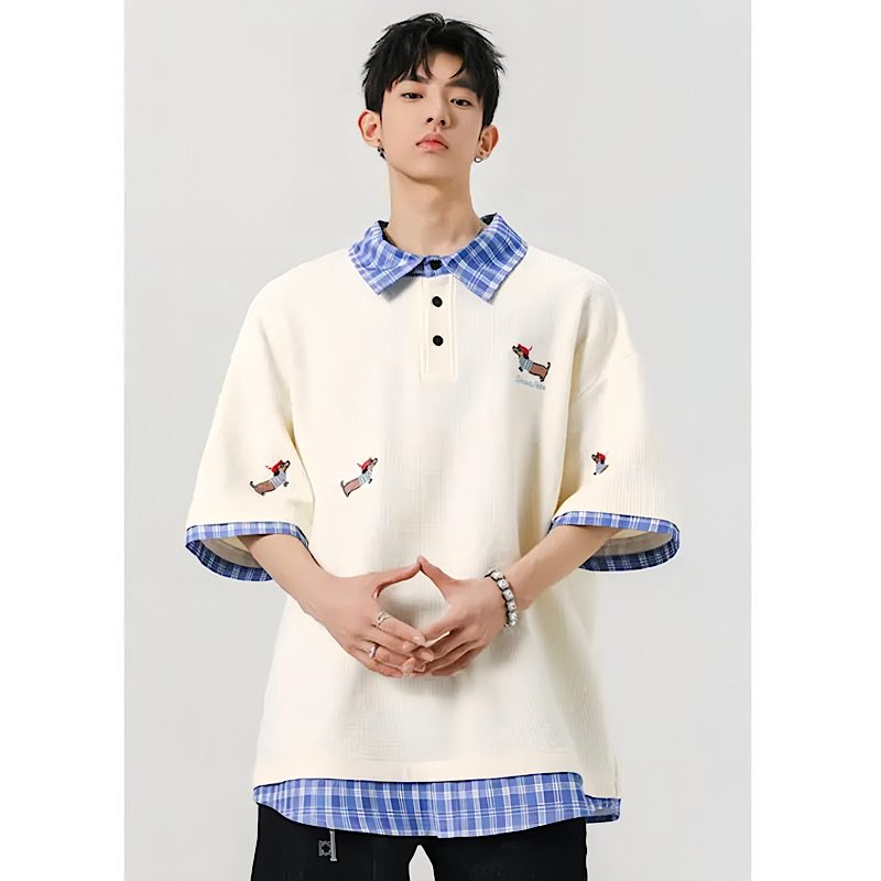 青少年男大童夏季短袖t恤2025新款男孩假两件半袖男童夏装体恤