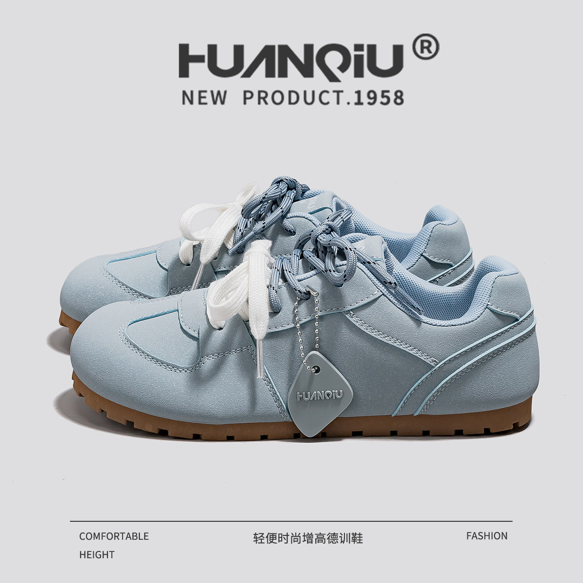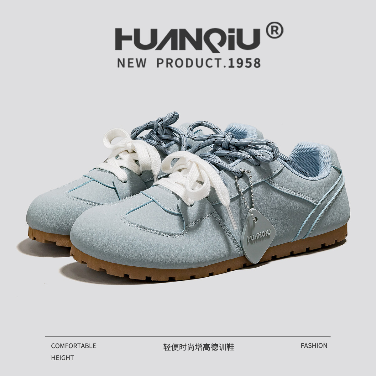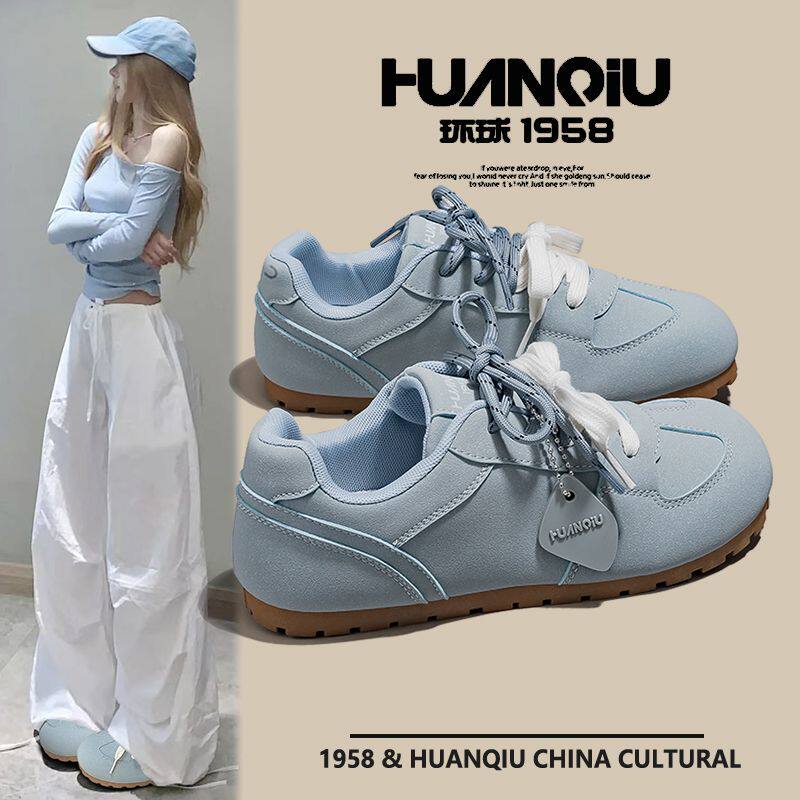 环球德训鞋女2025新款夏季软底不累脚百搭休闲运动蓝色泡芙鞋子女